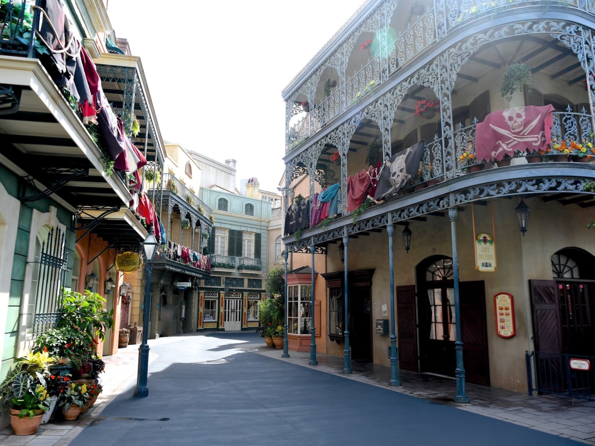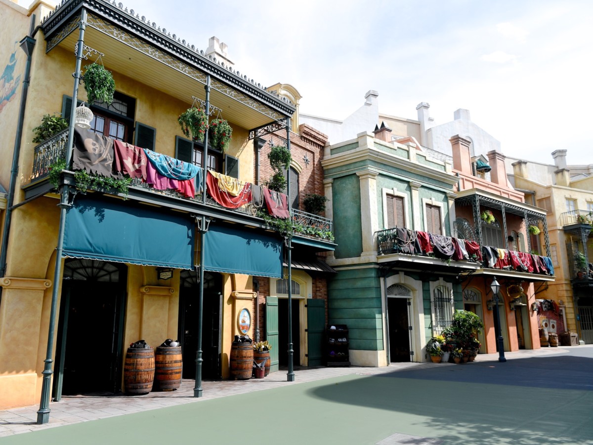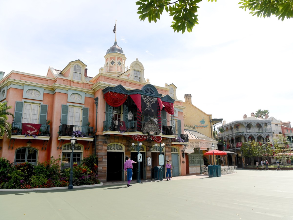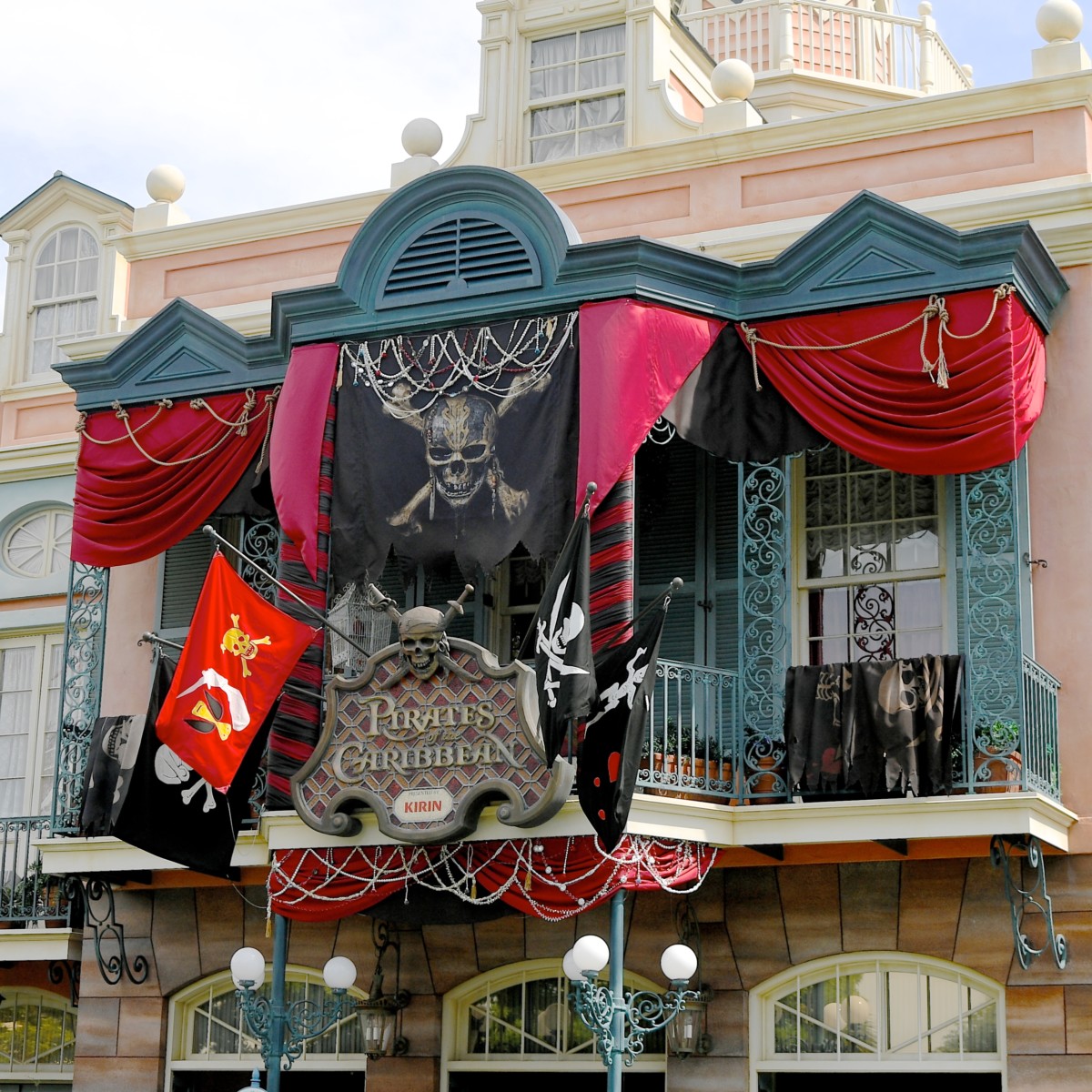 ロイヤルストリートにあるショップ「ゴールデンガリオン」、「パイレーツ・トレジャー」、そしてレストラン「ブルーバイユー・レストラン」にも『パイレーツ・オブ・カリビアン』の垂れ幕が飾り付けられています。