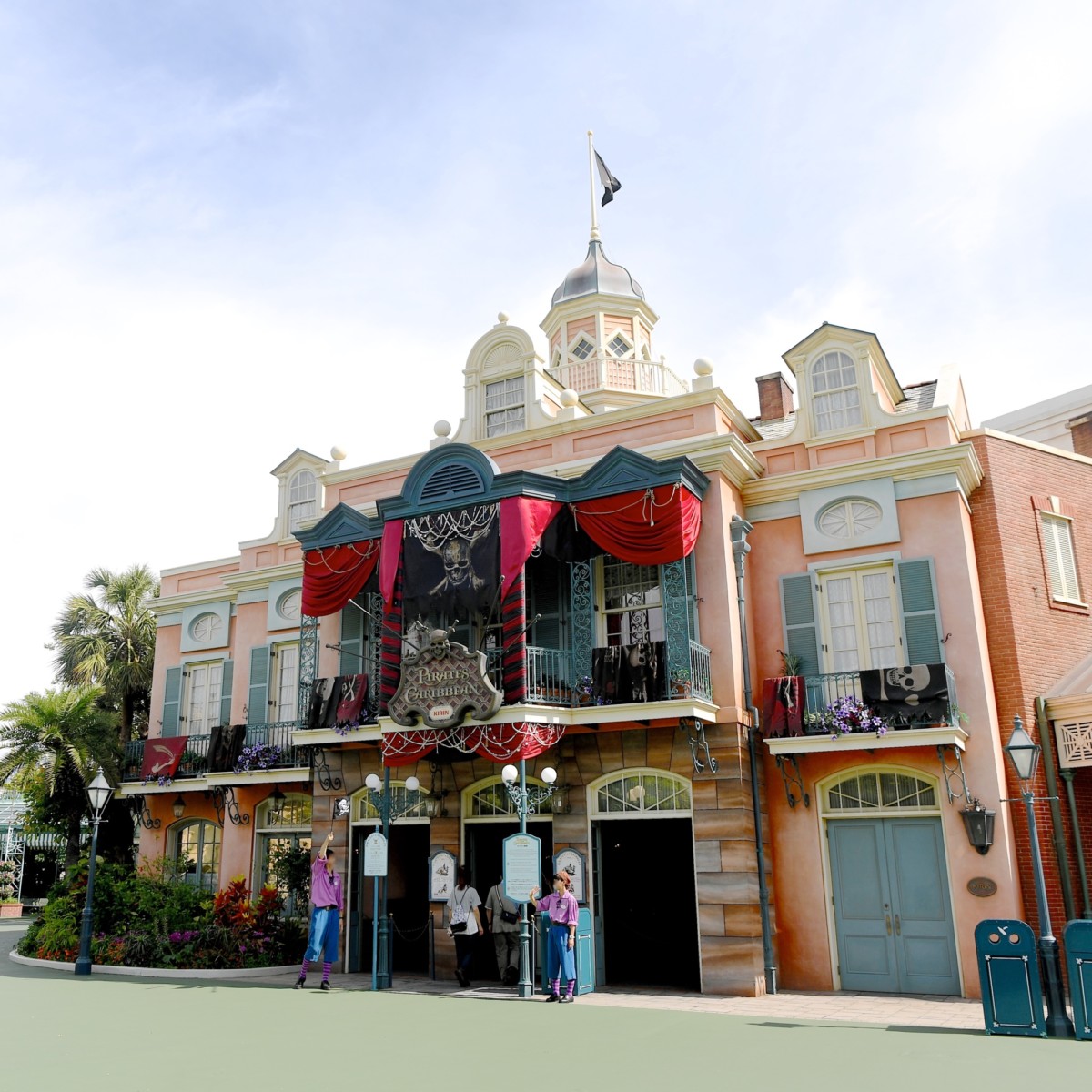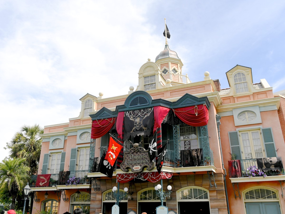アトラクション「カリブの海賊」にもスカルデザインの垂れ幕がかけられ、より海賊らしい雰囲気に☆