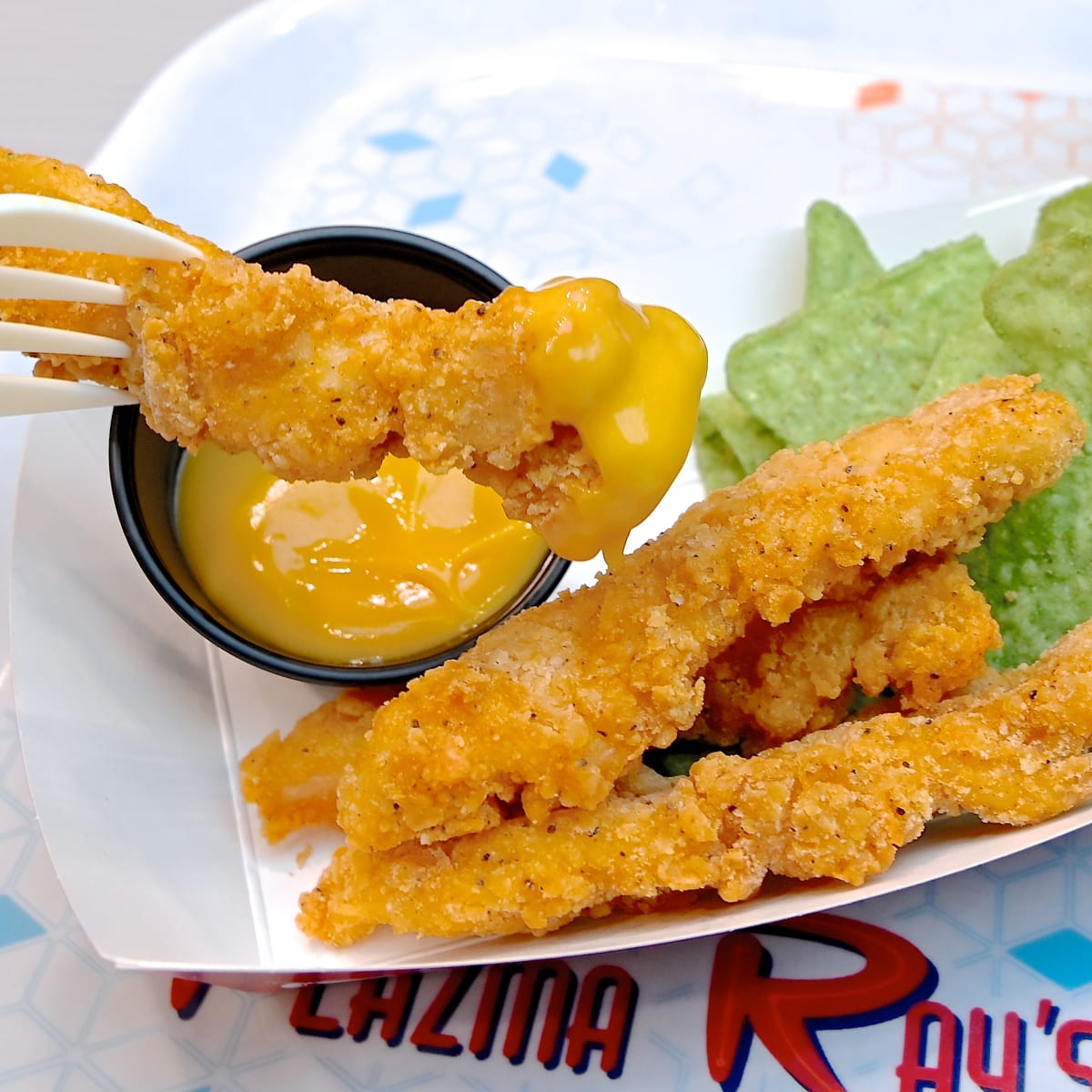 チキンテンダー&コーンチップス、チーズソース