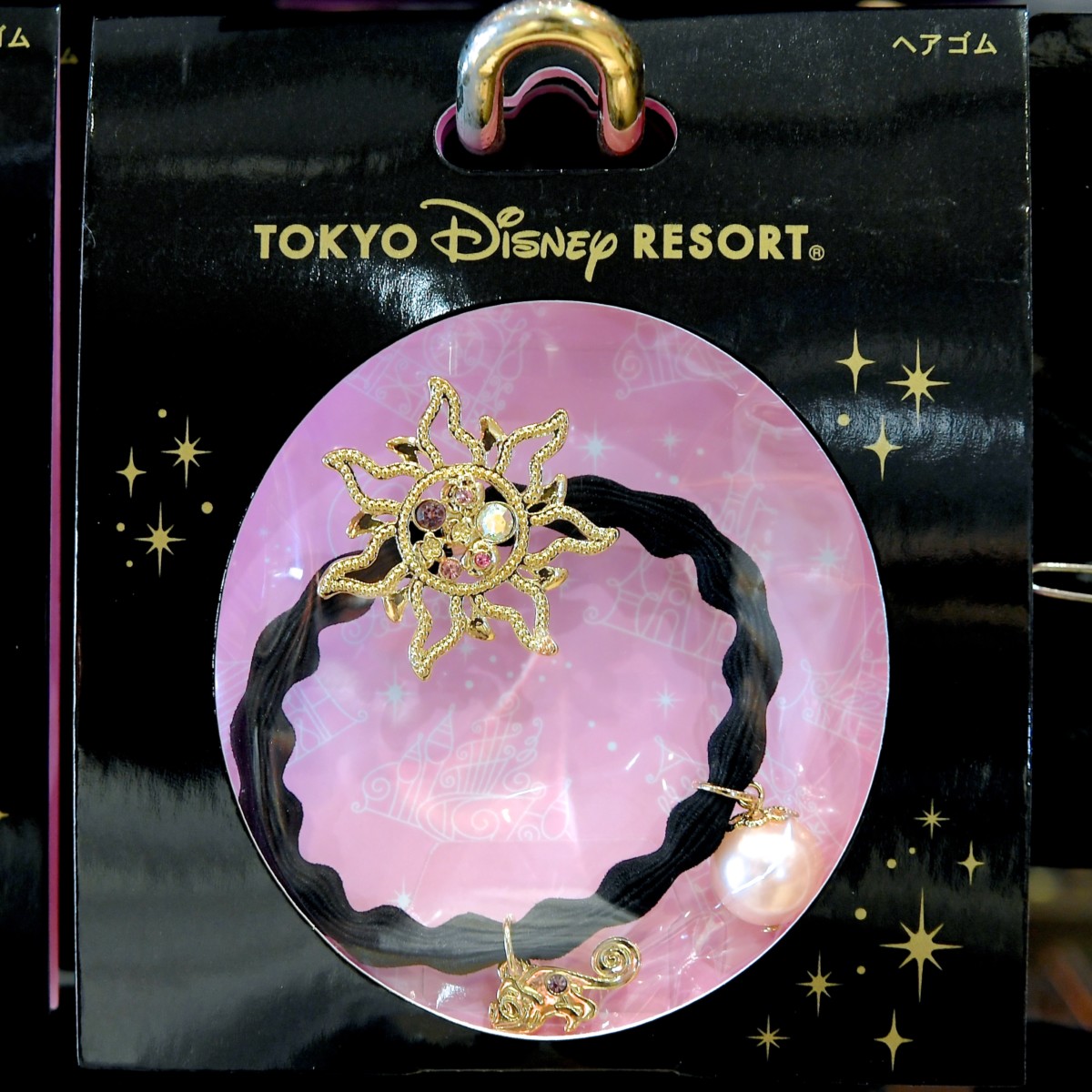 王家の紋章、パスカル、パールにピンク色のストーンがあしらわれた『塔の上のラプンツェル』のプリンセス”ラプンツェル”モチーフのヘアゴム。
