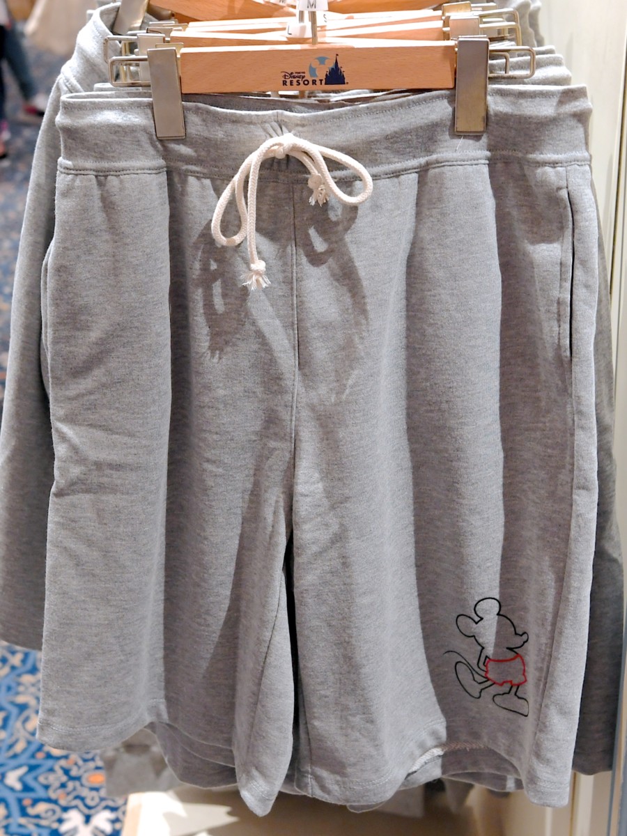 ミッキーのシルエットがデザインされたグレーのショートパンツ。