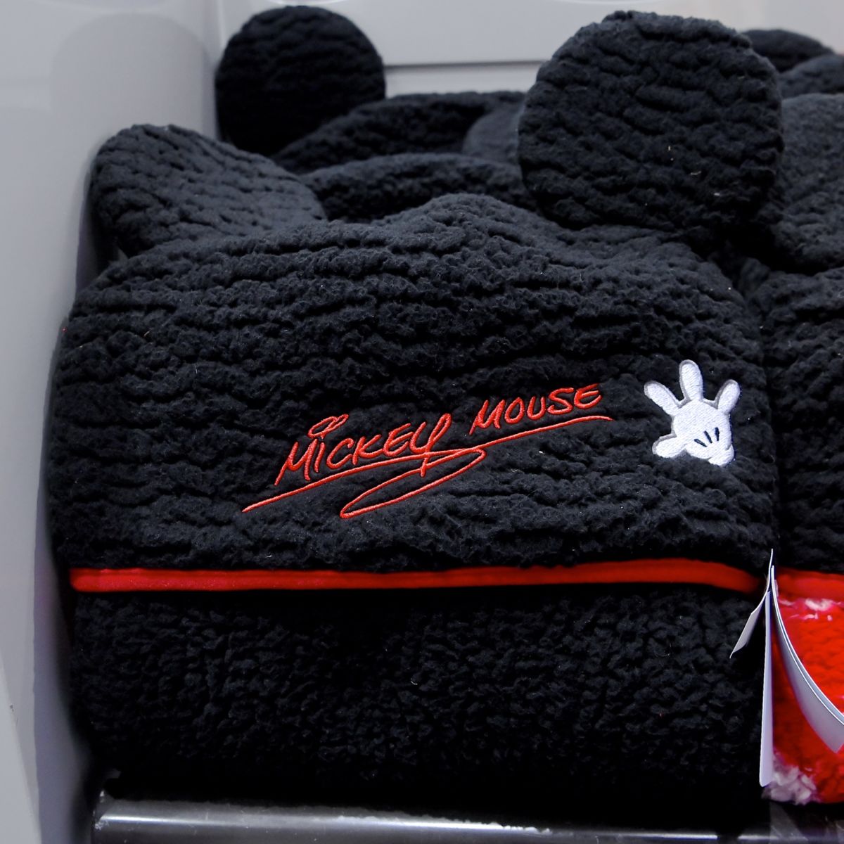 定番ミッキーマウスモチーフのフード付きブランケット。