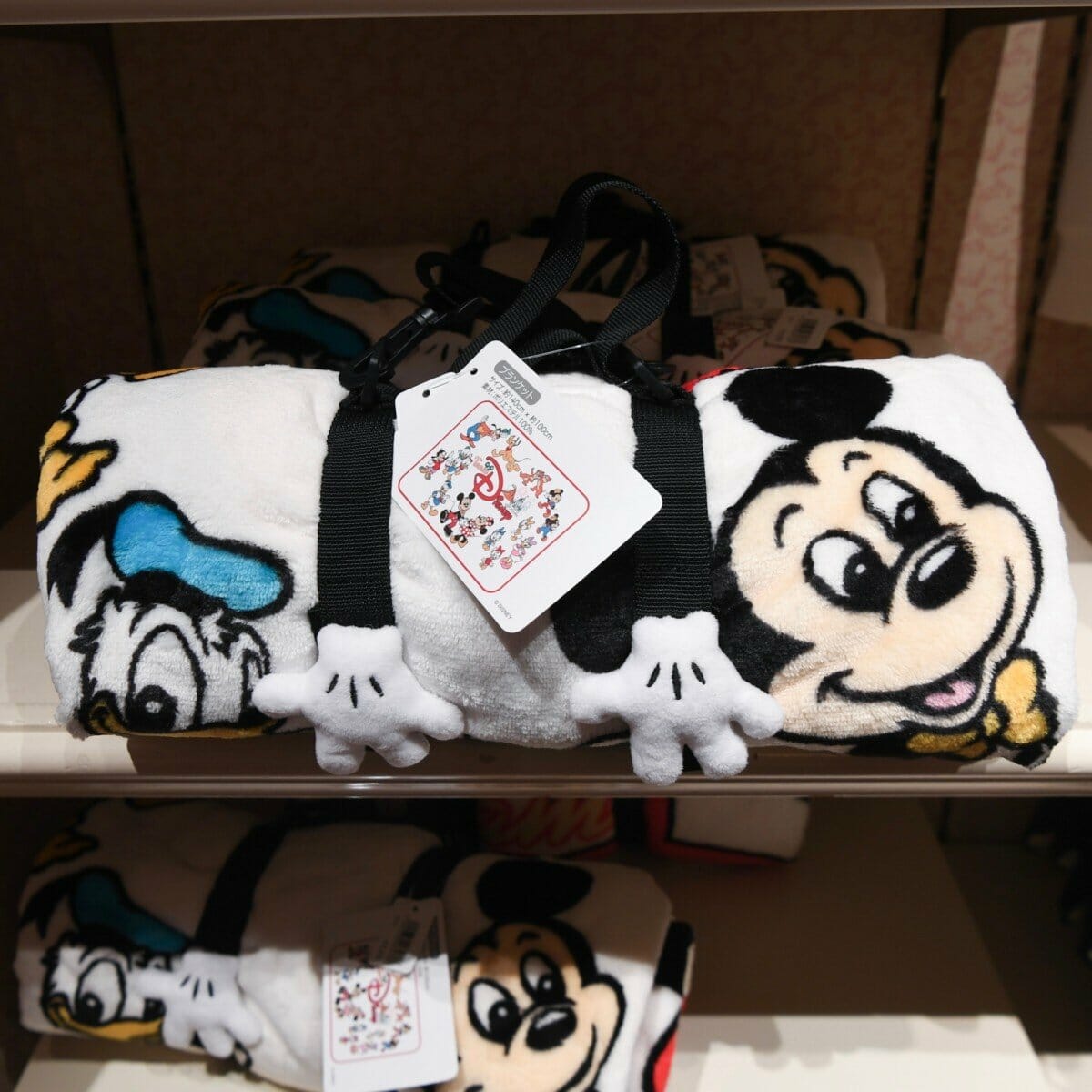 東京ディズニーランド、東京ディズニーシーではかわいいディズニーキャラクターモチーフのあったかブランケットを販売☆