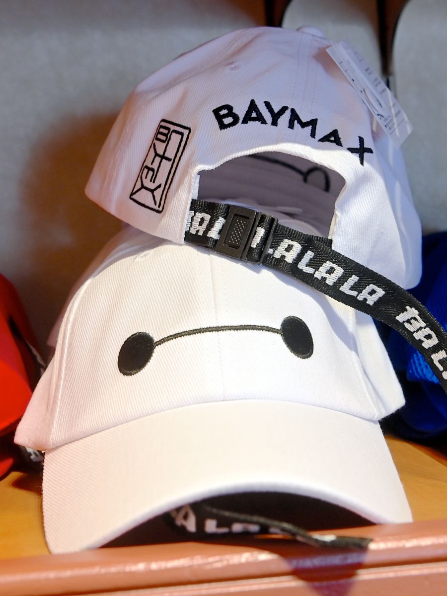 つば裏には電球を持ち、ひらめいたポーズのベイマックスが刺繍されています。