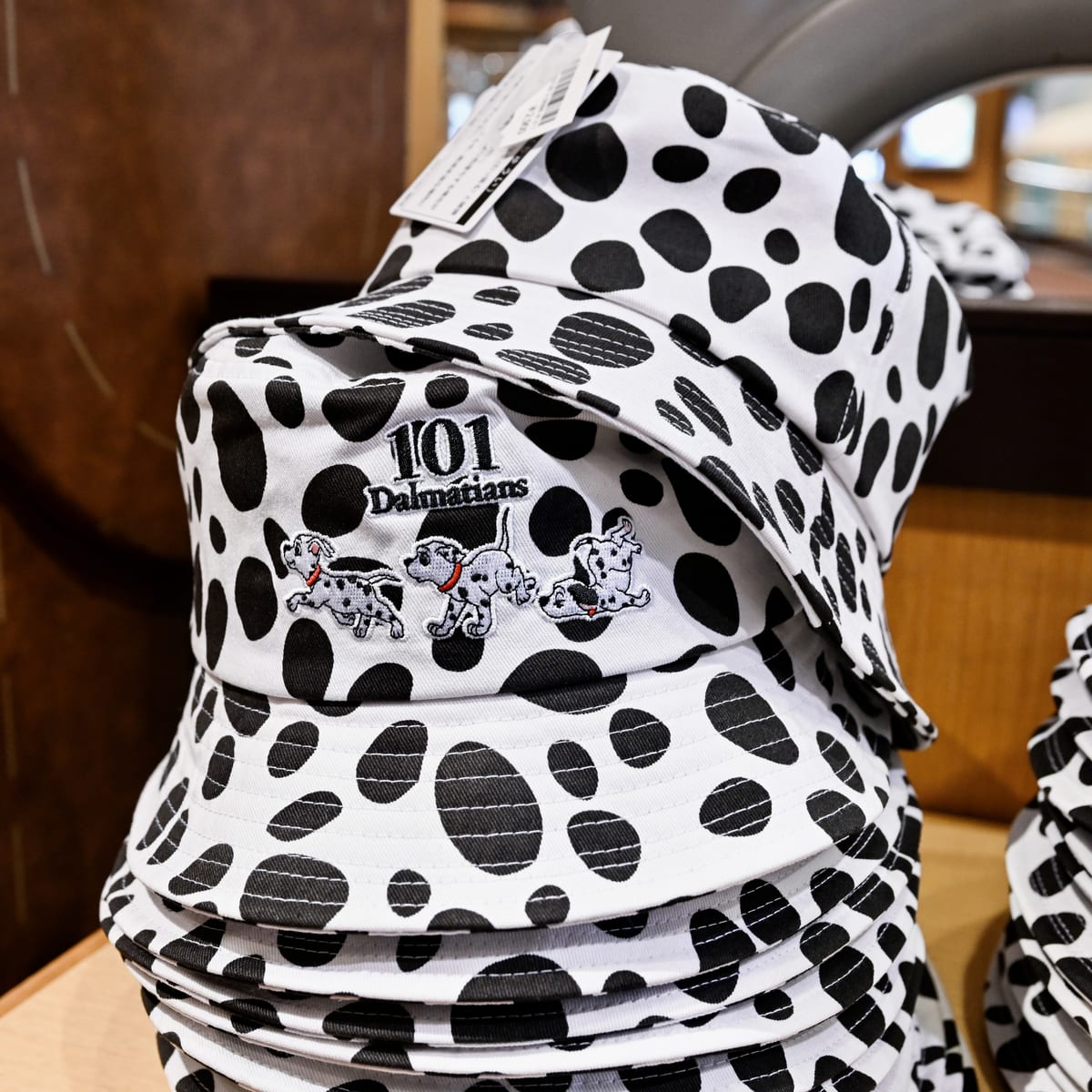 『101匹わんちゃん』のダルメシアン柄がデザインされた可愛くてオシャレなバケットハット。