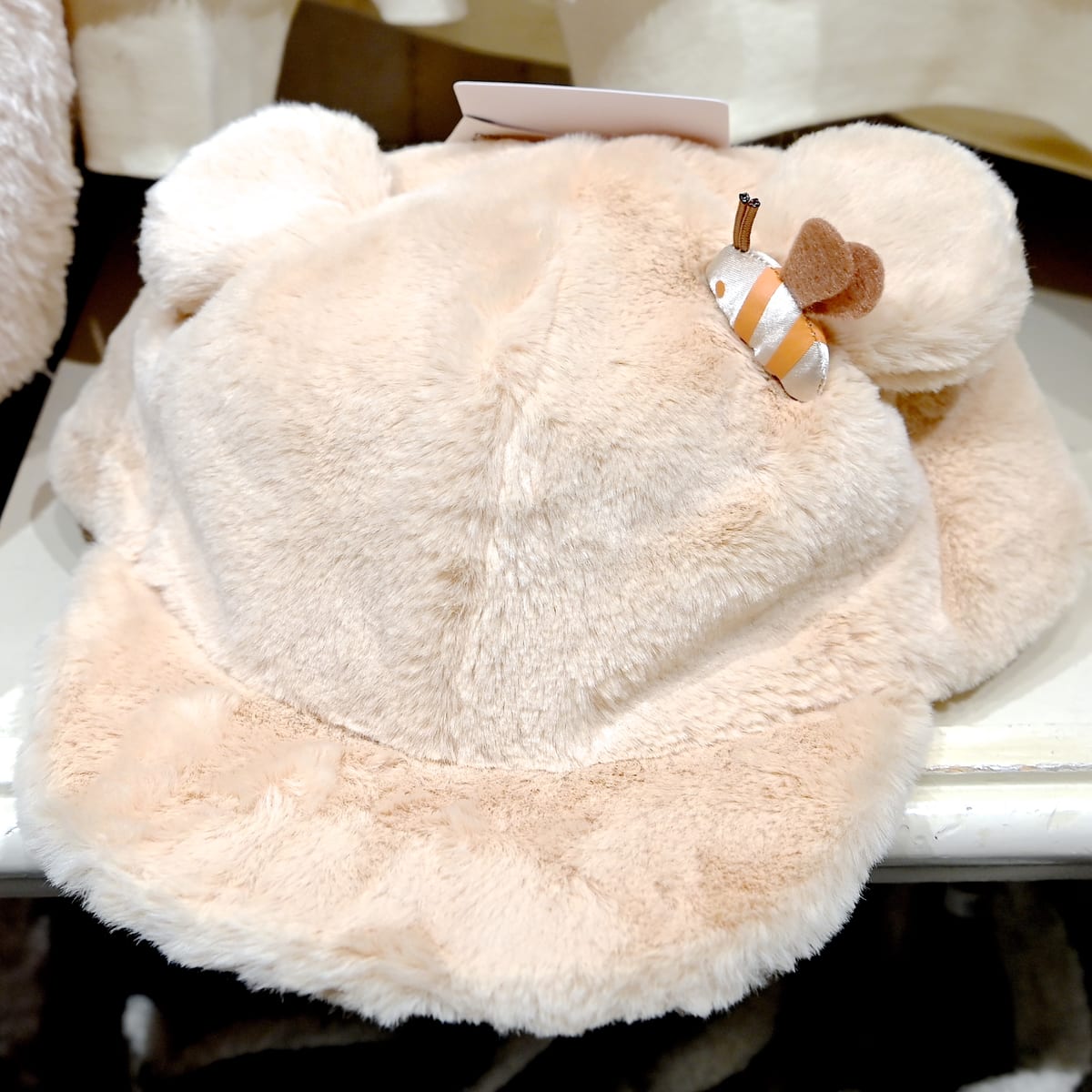 ベージュカラーでかわいいくまのプーさんのふわふわキャップ。
