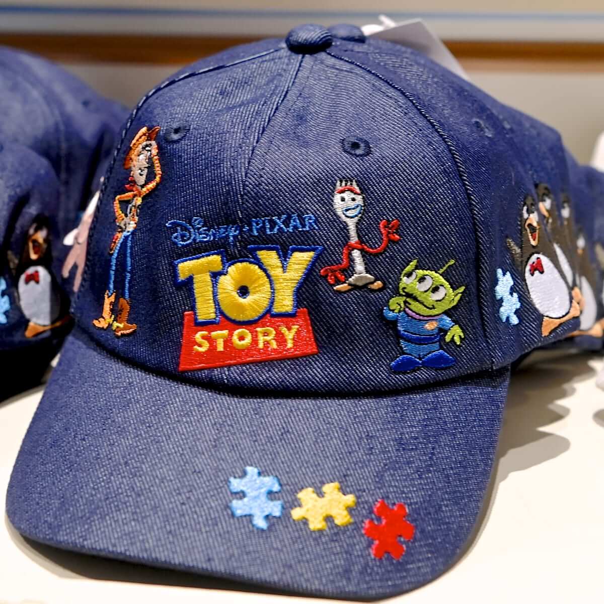 ウッディやフォーキーたちトイ・ストーリーの仲間たちが刺繍されたデニム風キャップ。