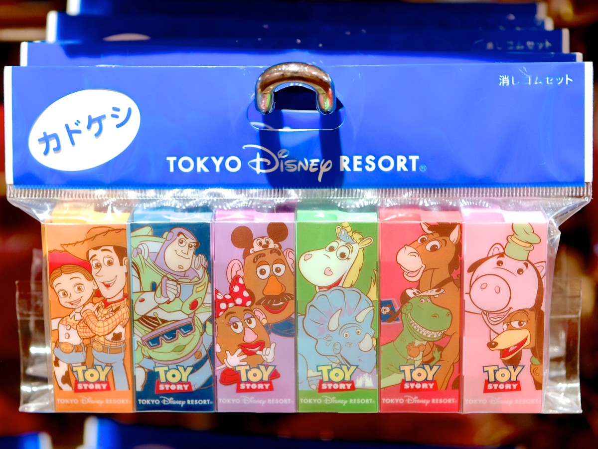 東京ディズニーリゾートに遊びに来た『トイ・ストーリー』の仲間たちがデザインされた消しゴム6個セット。