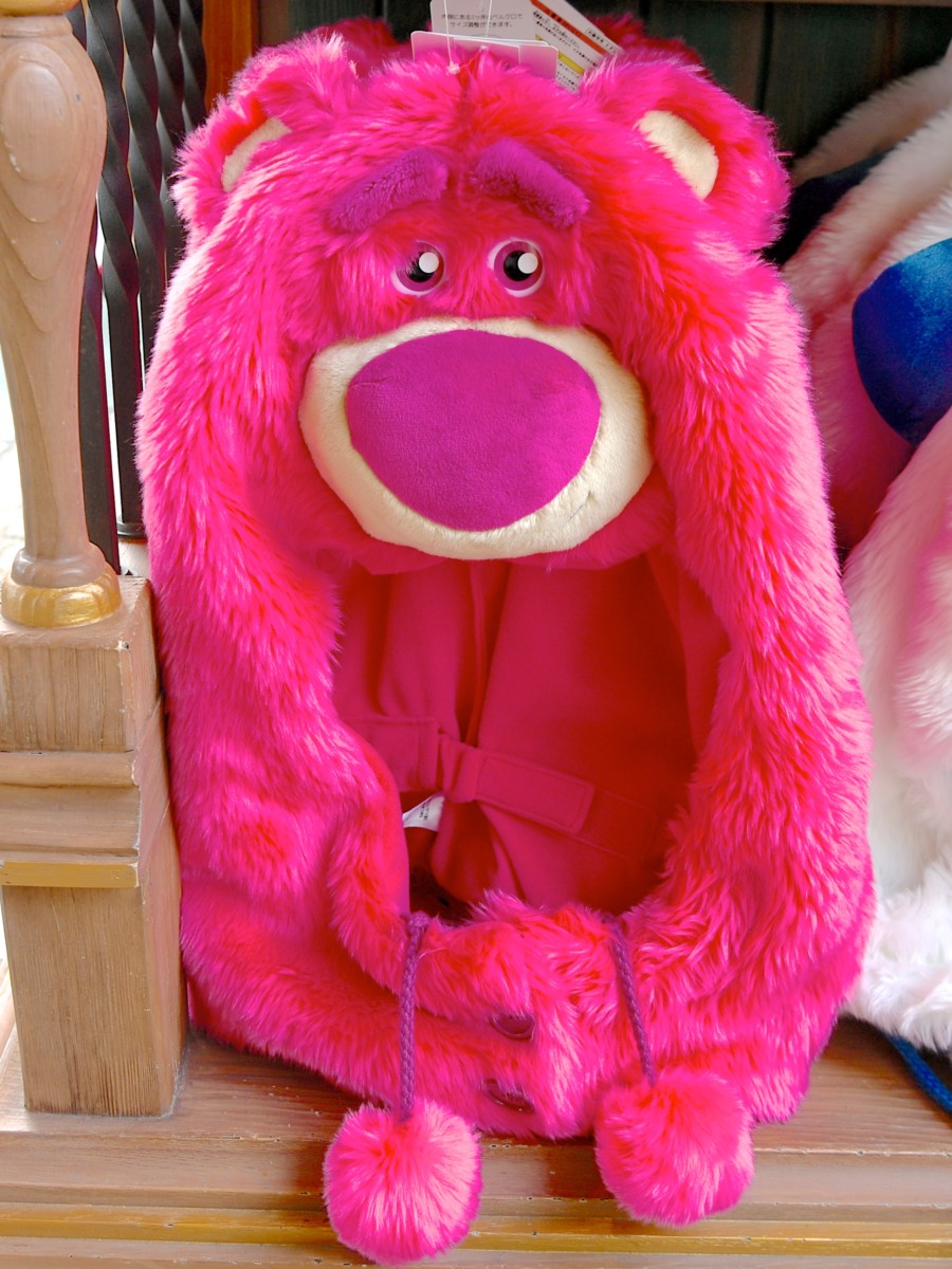 『トイ・ストーリー3』に登場する抱きしめるといちごの香りがするぬいぐるみ、テディベアの“ロッツォ”のポンポン付きファンキャップ。