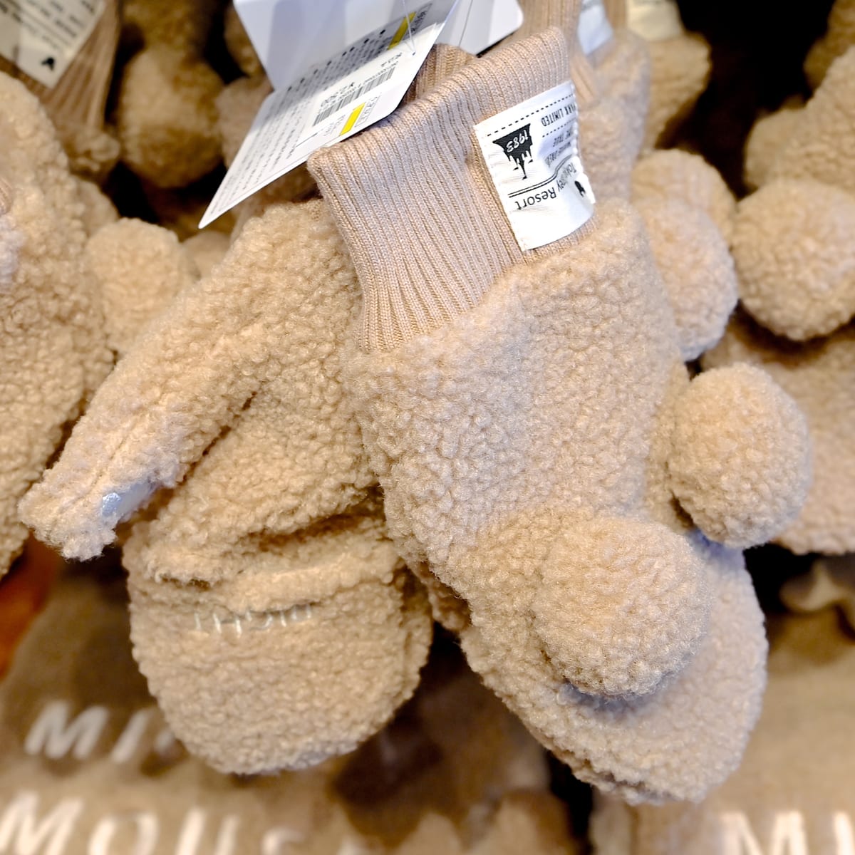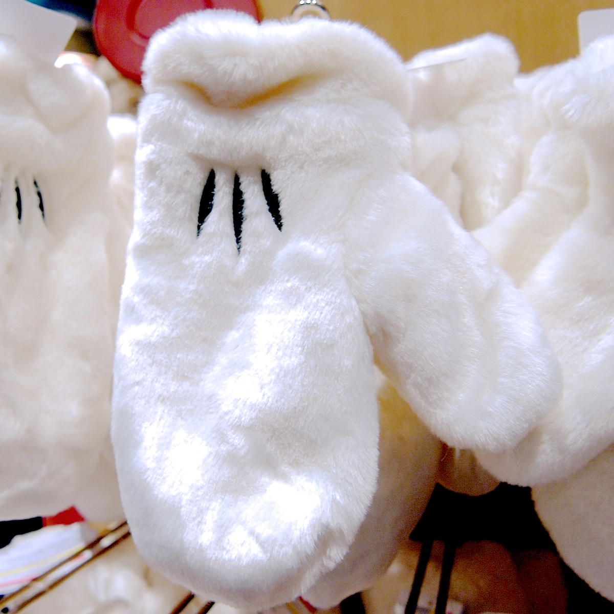 ミッキーマウスモチーフのふわもこかわいい手袋。
