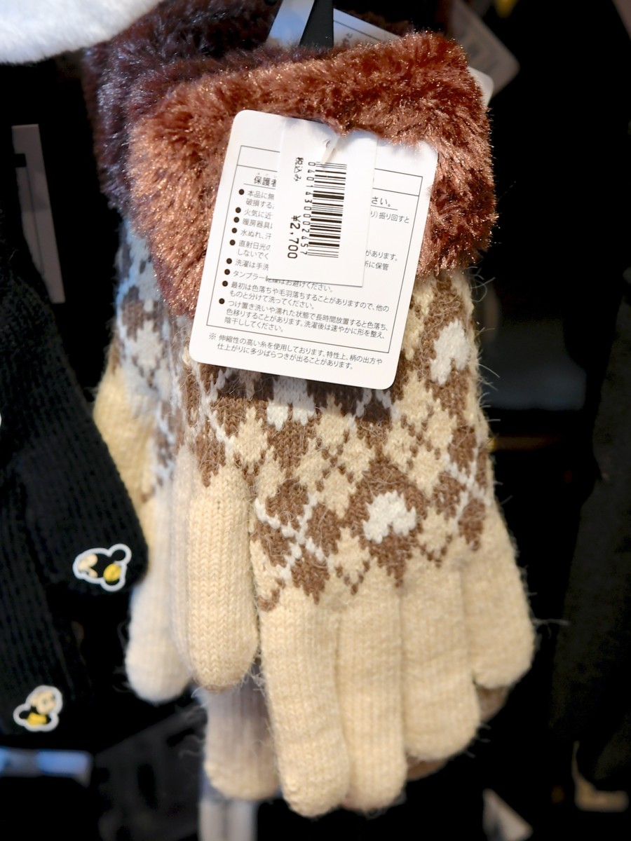 あたたかそうなベージュカラーの手袋。