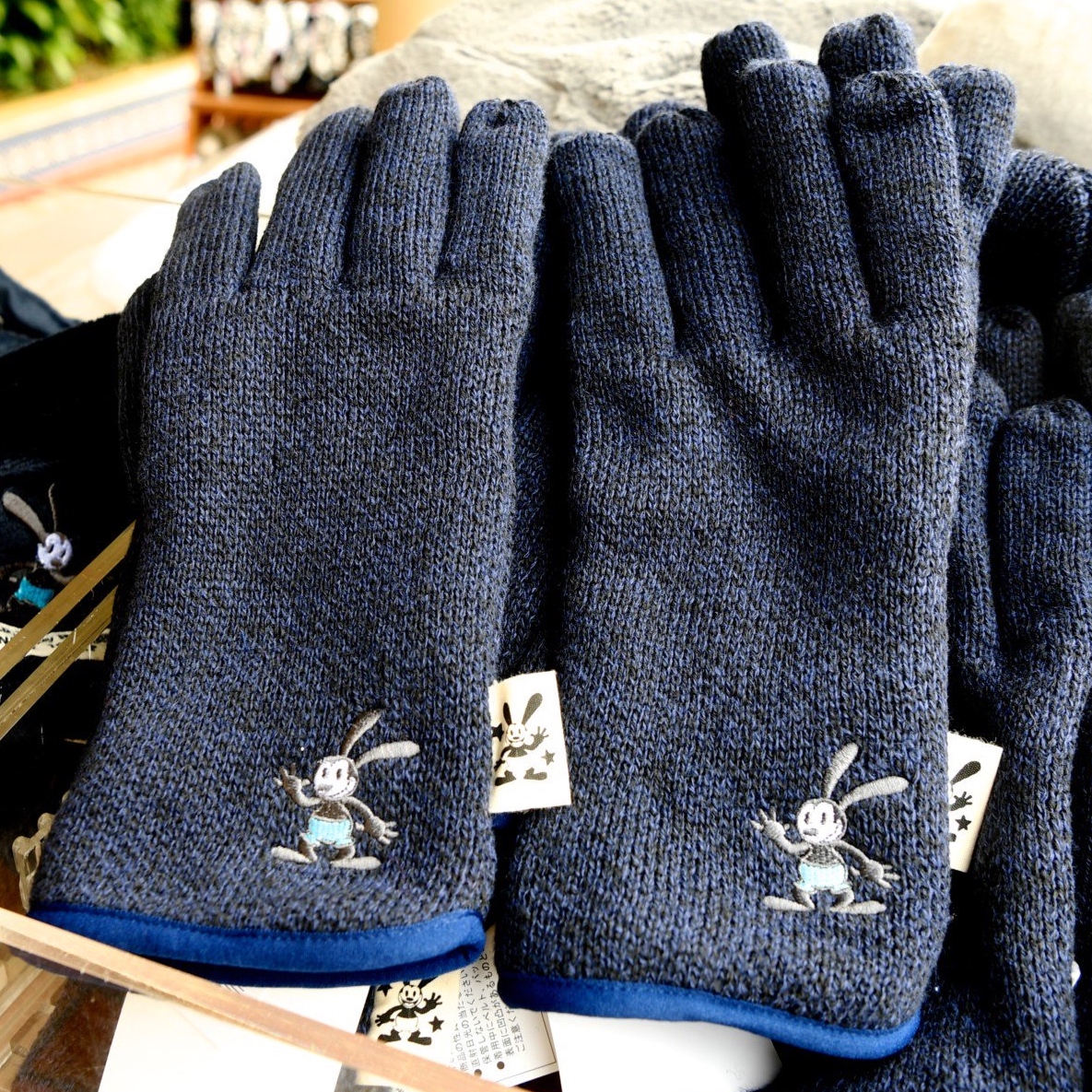 ネイビーカラーにオズワルドの刺繍がおしゃれなニット手袋。