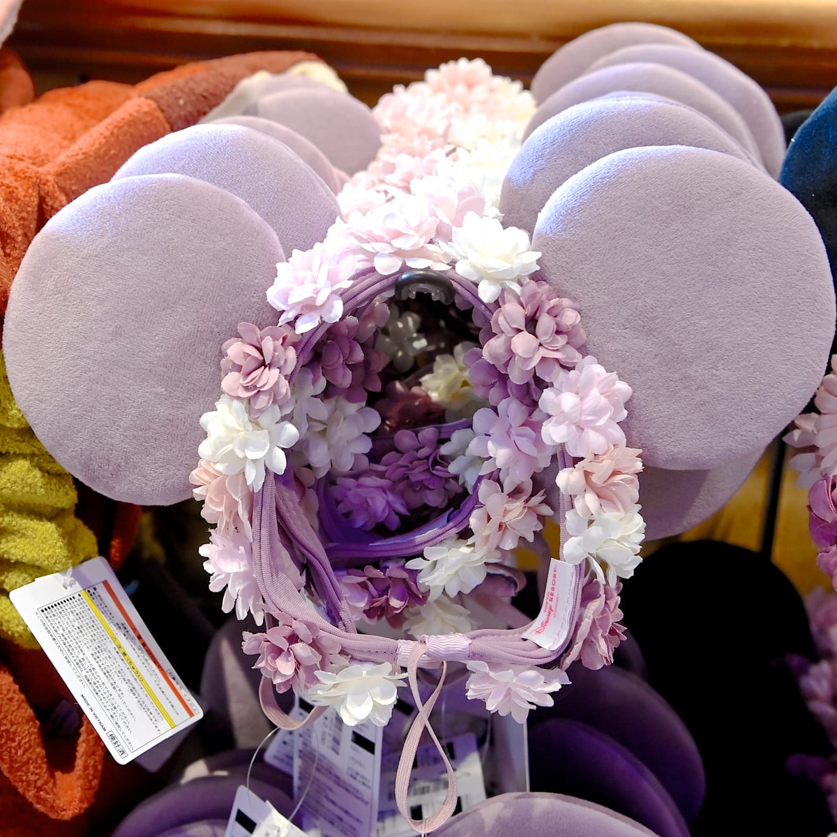 くすみカラーがおしゃれなミニーの花冠風ヘアバンド。