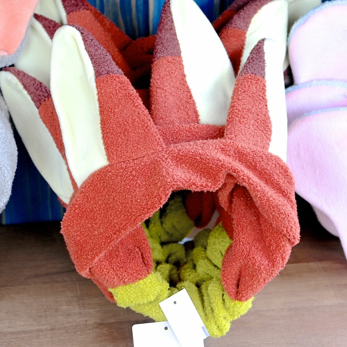淡いピンク色にお耳、鼻、後ろにしっぽが付いています☆