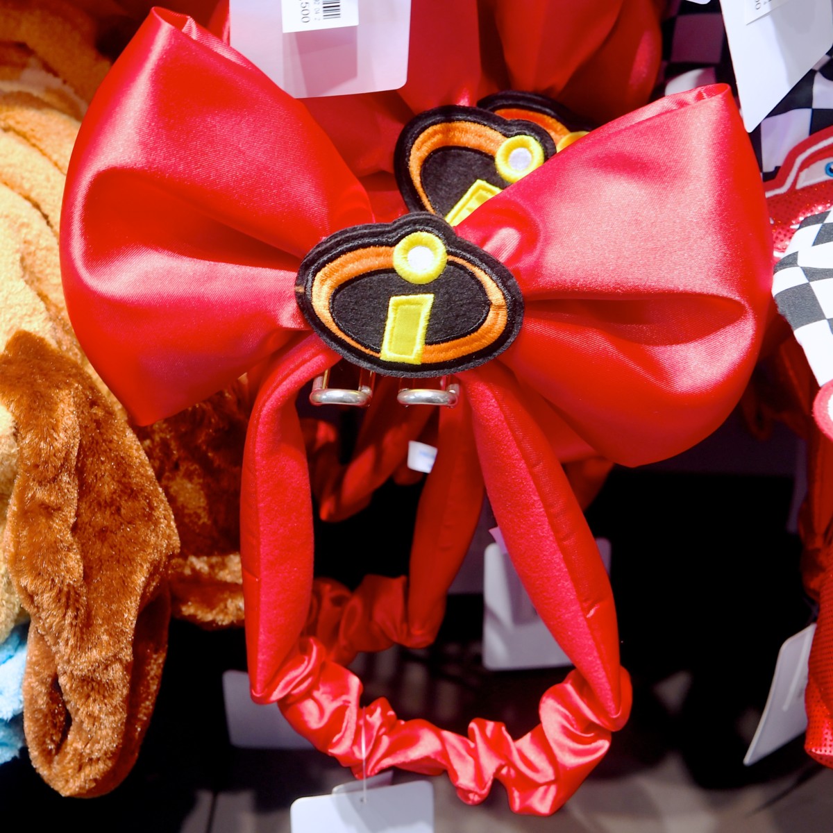 ディズニー/ピクサー映画『Mr.インクレディブル』のマークがデザインされたリボン型のヘアバンド。
