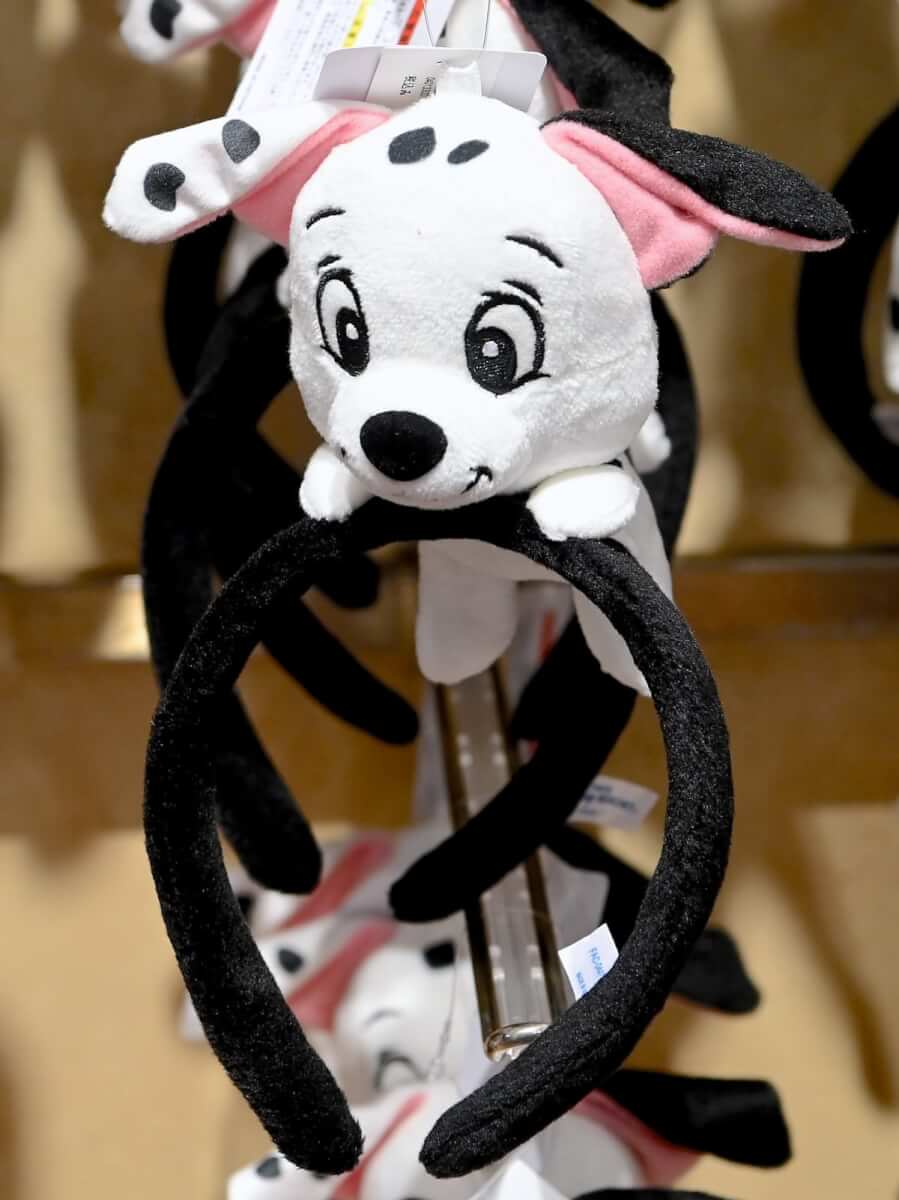 『101匹わんちゃん』が頭の上にちょこんと乗ったように見えるぬいぐるみカチューシャ。