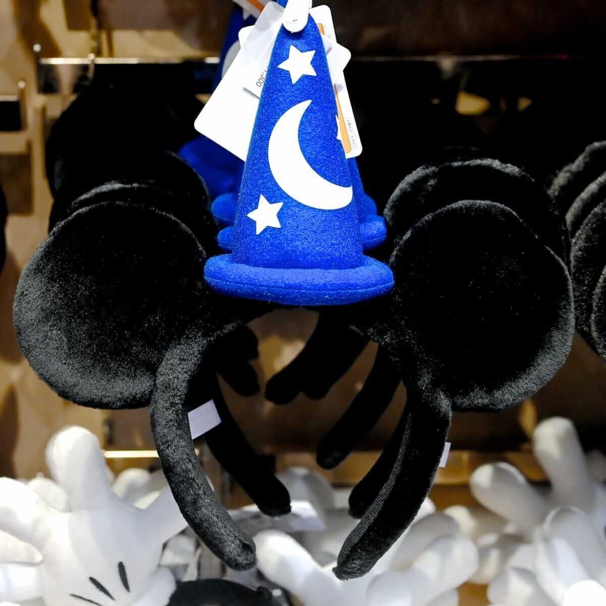 『ファンタジア』に登場するソーサラーハット、ローブ姿のミッキーマウスがデザインされたカチューシャ。