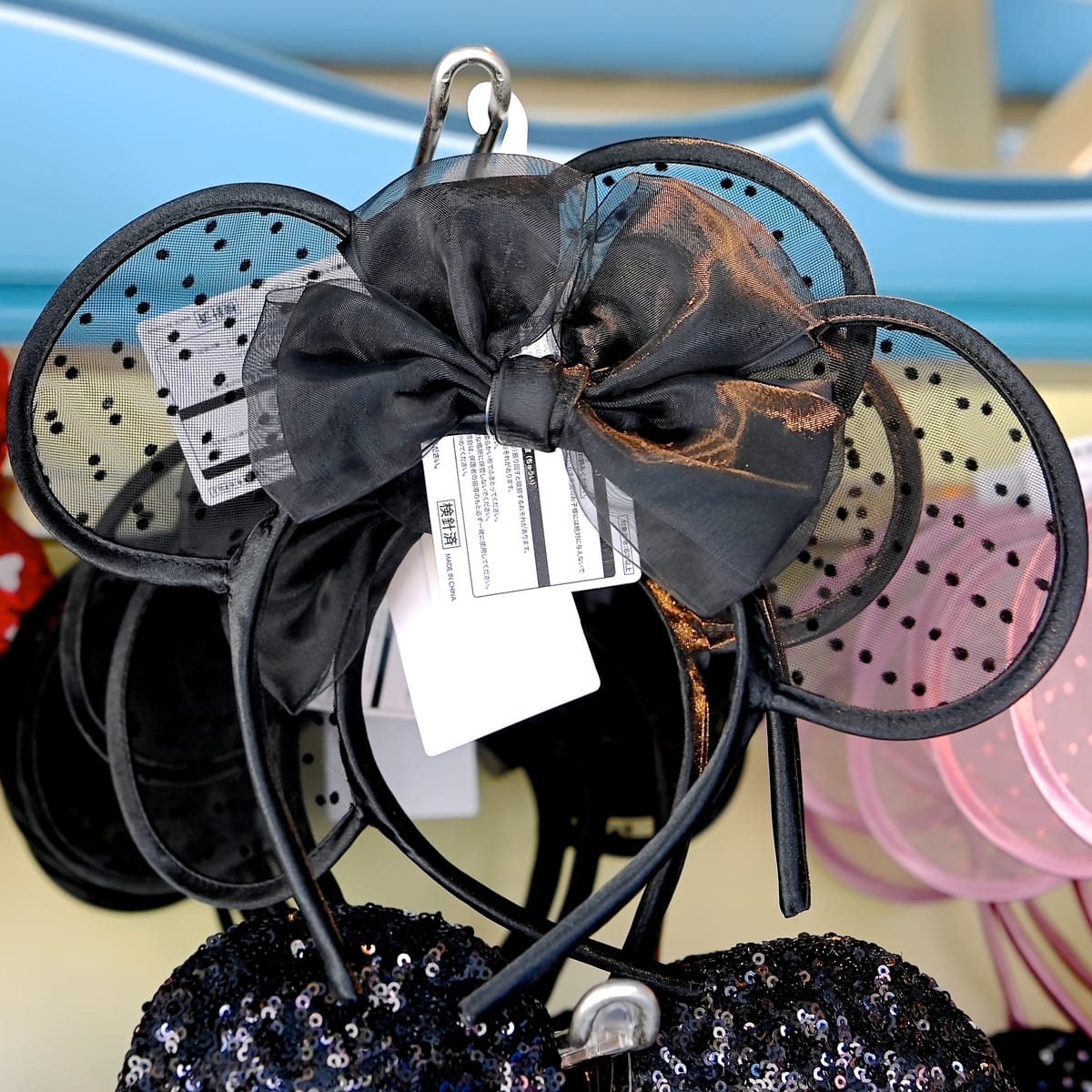 ミニーらしいドット柄のシフォンカチューシャ、ブラック。