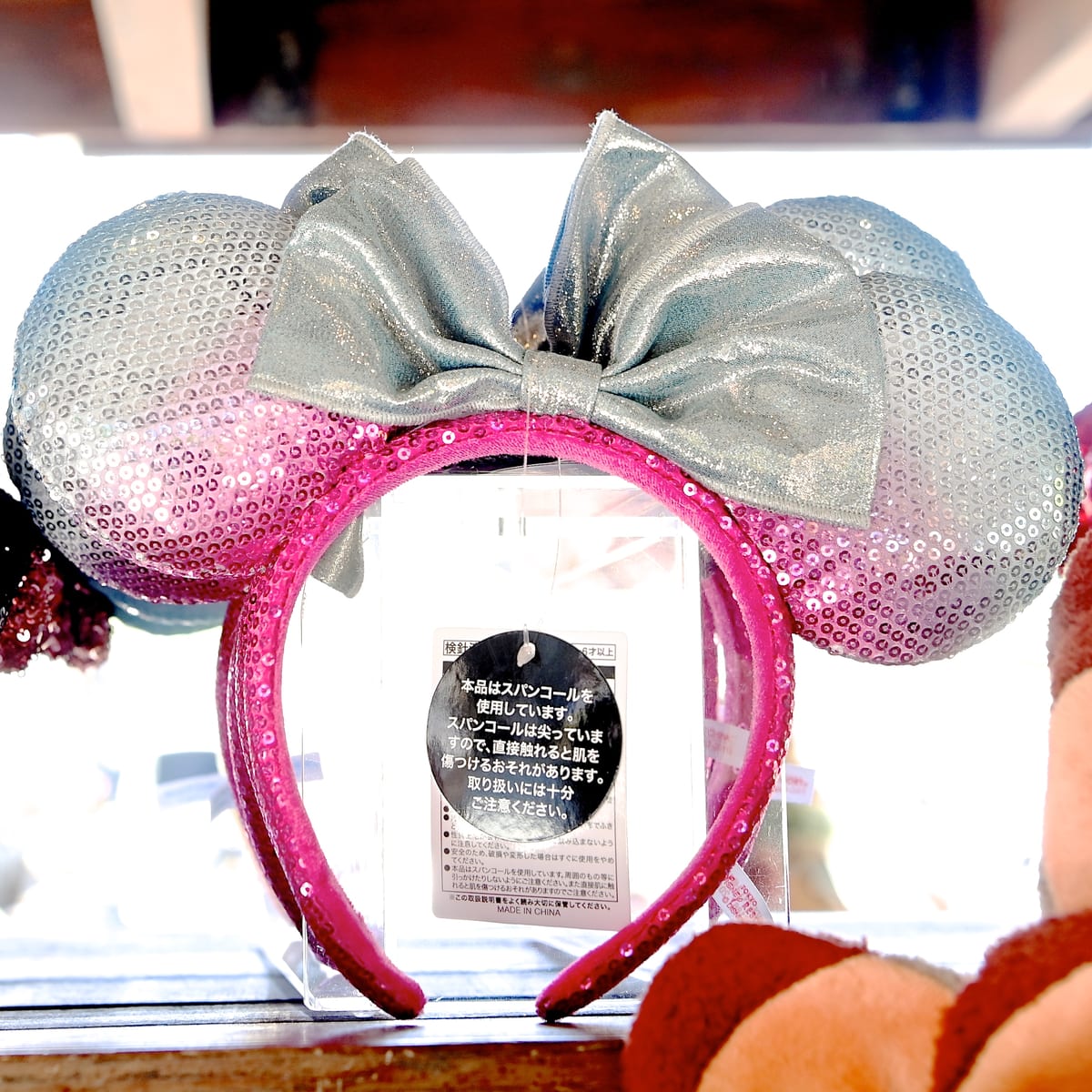 ミニーのスパンコールカチューシャにくすみカラーのおしゃれなピンクが登場。