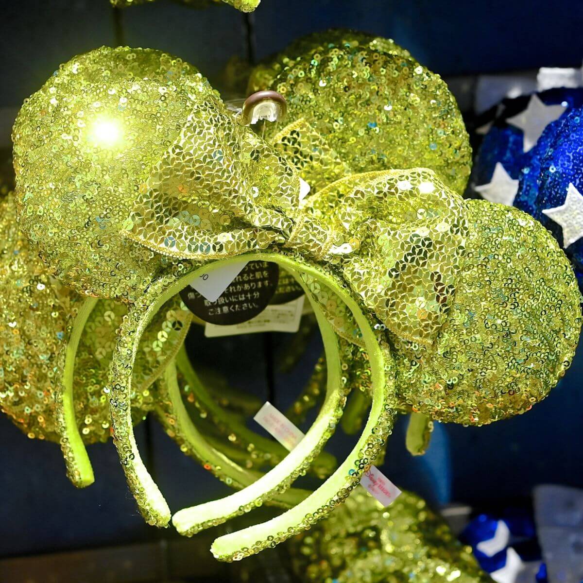 ミニーマウスのスパンコールカチューシャ、イエローグリーン。