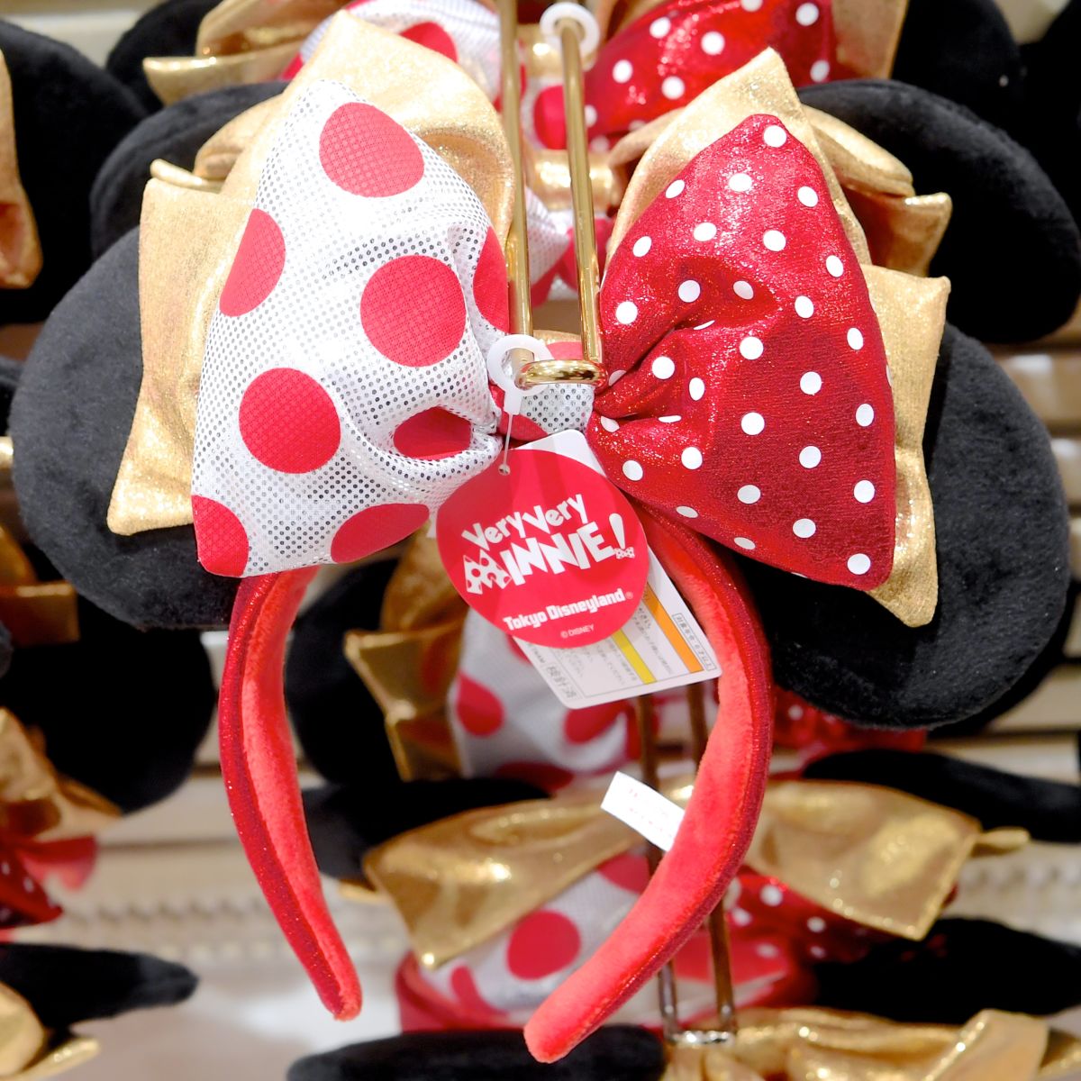 ショーベースで公演される新ショー「イッツ・ベリー・ミニー!」ミニパレード「ベリー・ミニー・リミックス」のミニーマウスの新規コスチュームとお揃いデザインの華やかなドット柄カチューシャ。