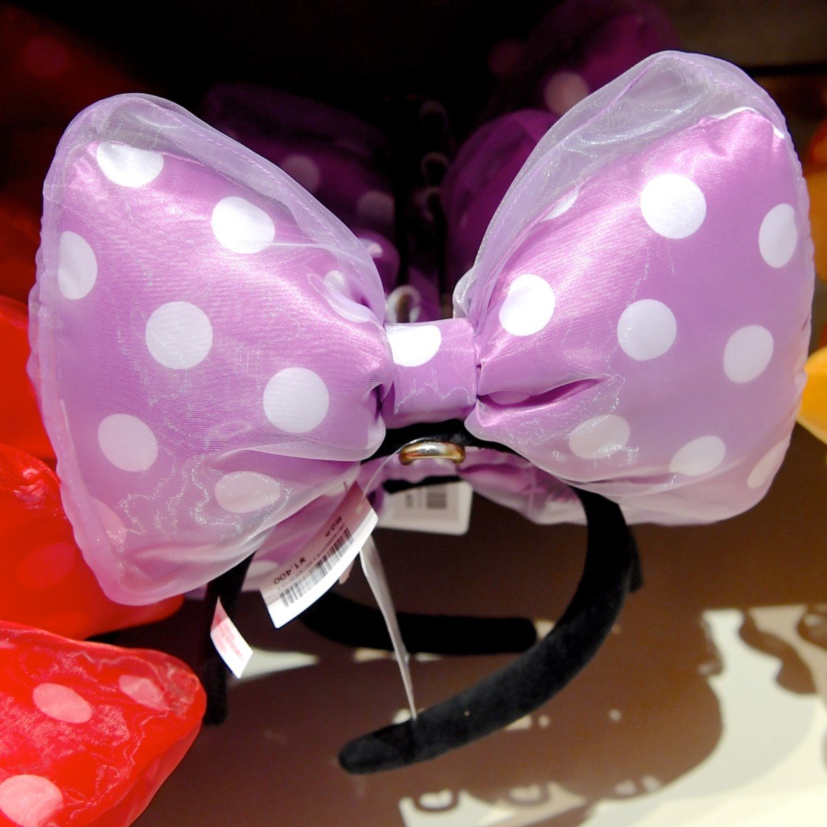 スパンコールリボンデザインのミニーデザインカチューシャ。