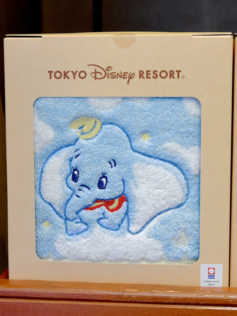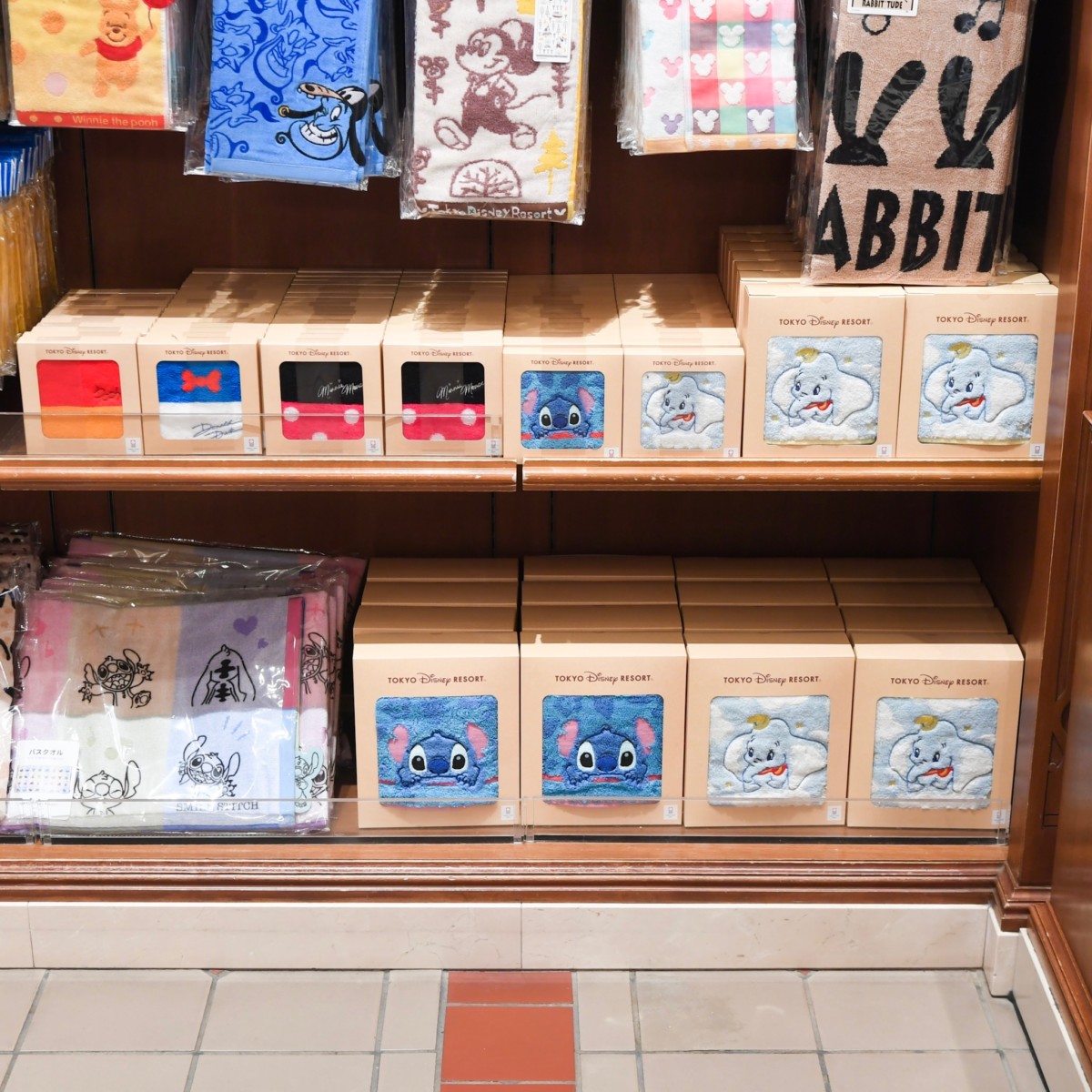 ミッキー、ミニー、ドナルド、プーさん、スティッチ、ダンボ、ダッフィー、シェリーメイ、ステラ・ルーたちのミニタオルやウォッシュタオルが販売中ですが、今回はスティッチとダンボのフェイスタオルが登場したので紹介します。