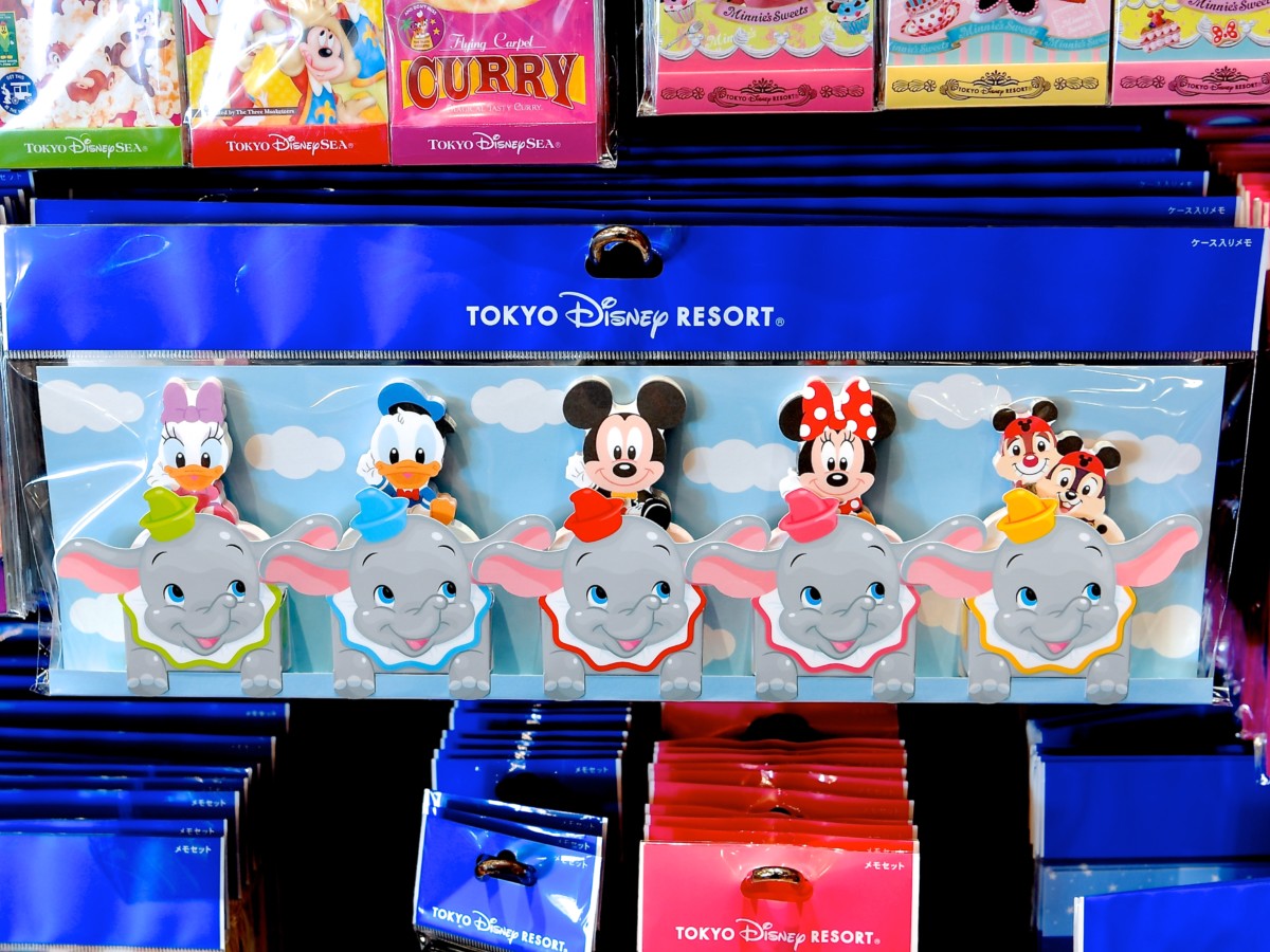 かわいいダンボのケースに入ったミッキーたちのメモセット。