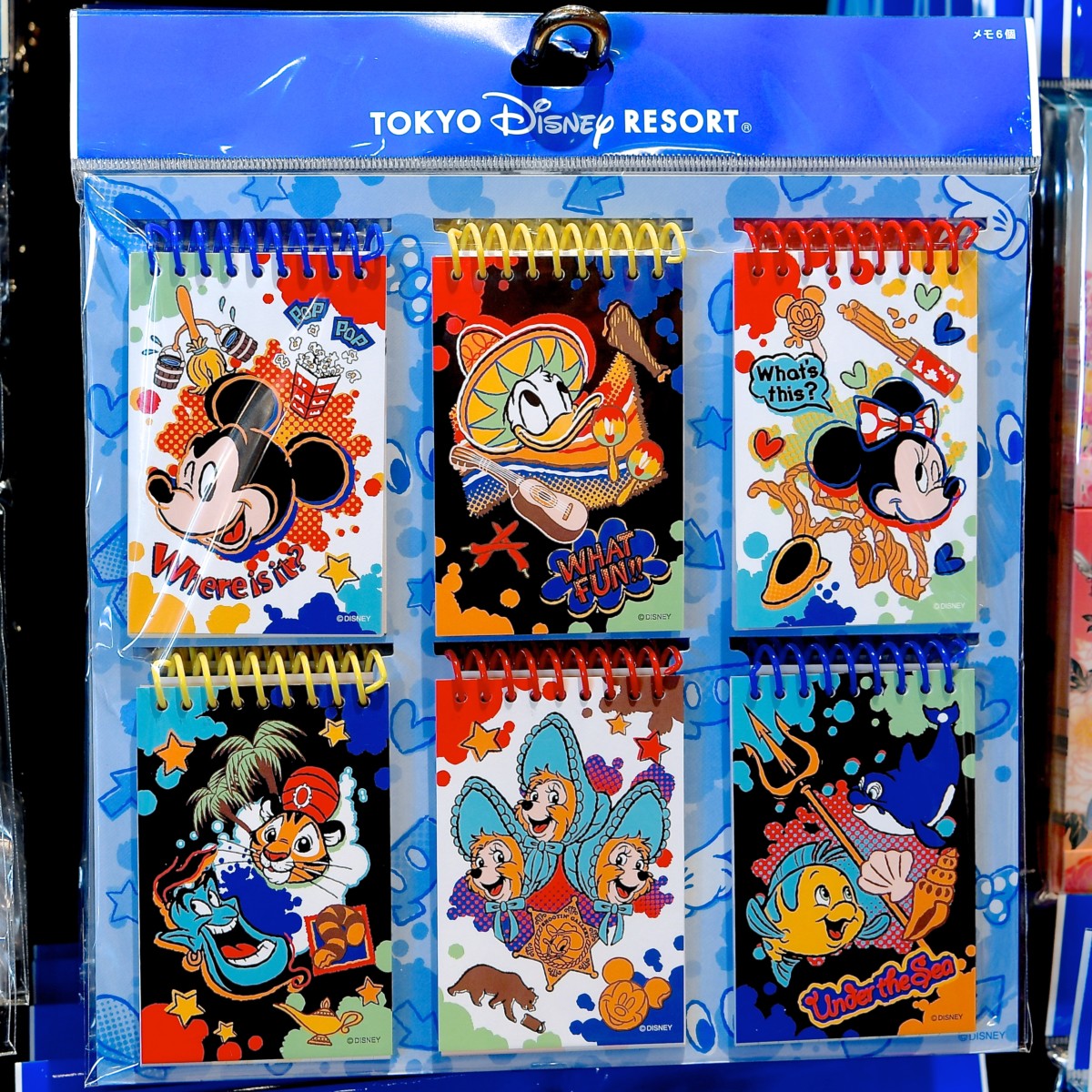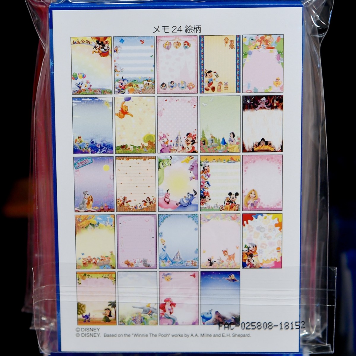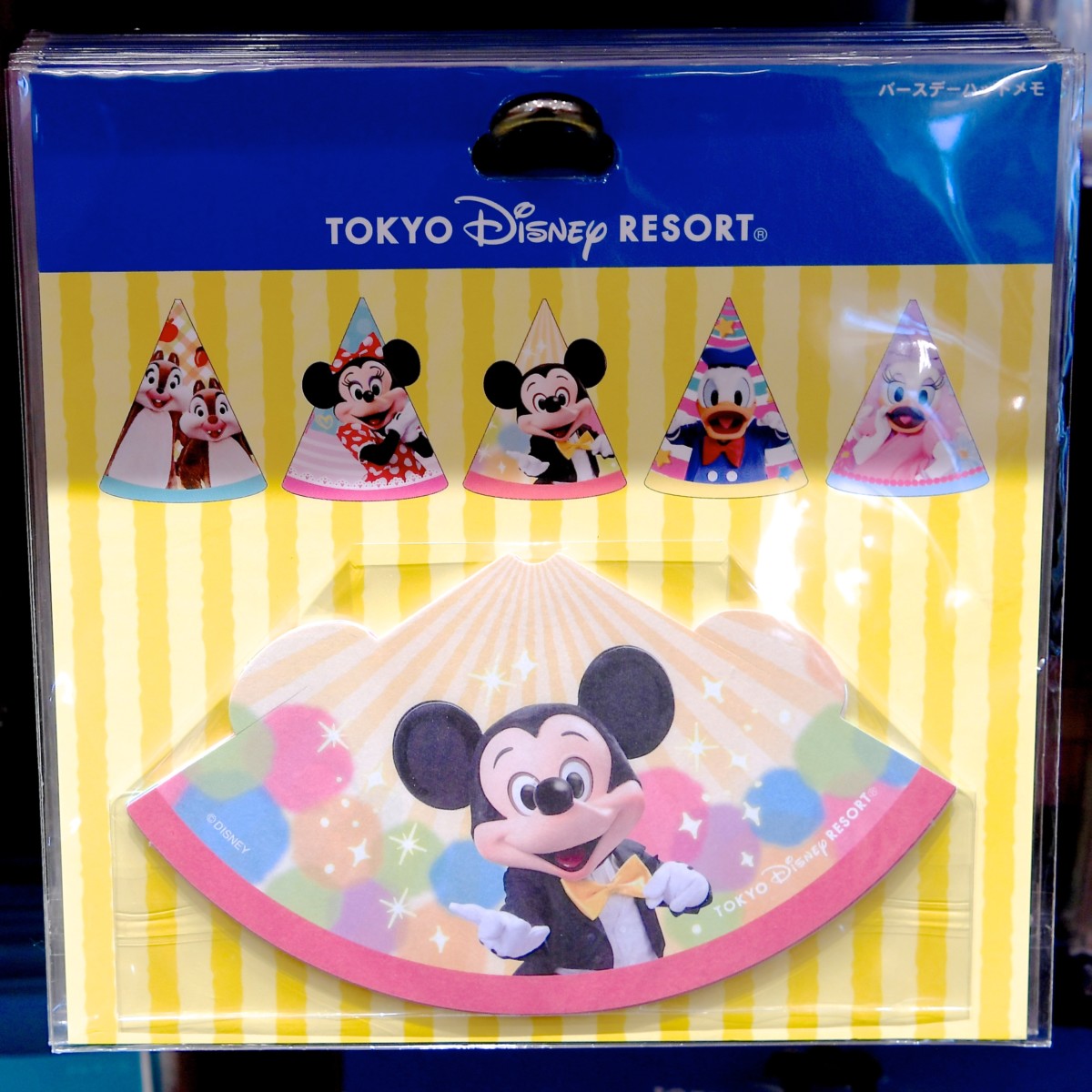 ミッキー、ミニー、ドナルド、デイジー、スティッチ、プーさんのお顔がデザインされたメモセット。