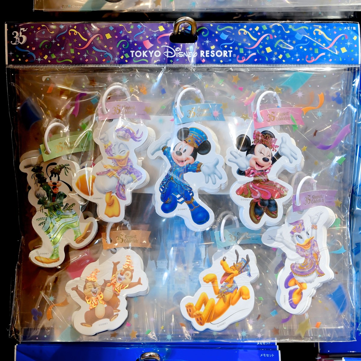 東京ディズニーリゾート35周年コスチュームのミッキーたちがデザインされたダイカットリングメモセット。