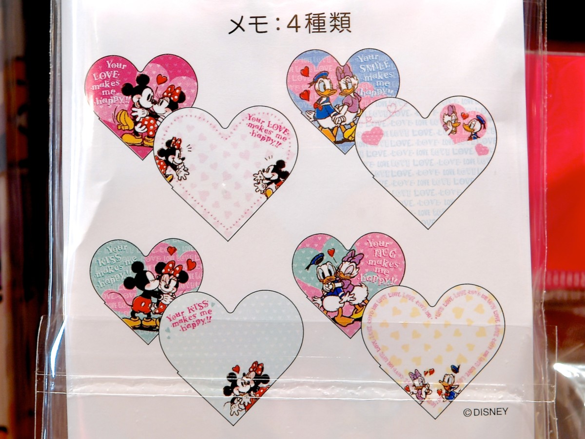 ミッキー&ミニー、ドナルド&デイジーのラブラブなデザインがかわいいメモ4冊セット。