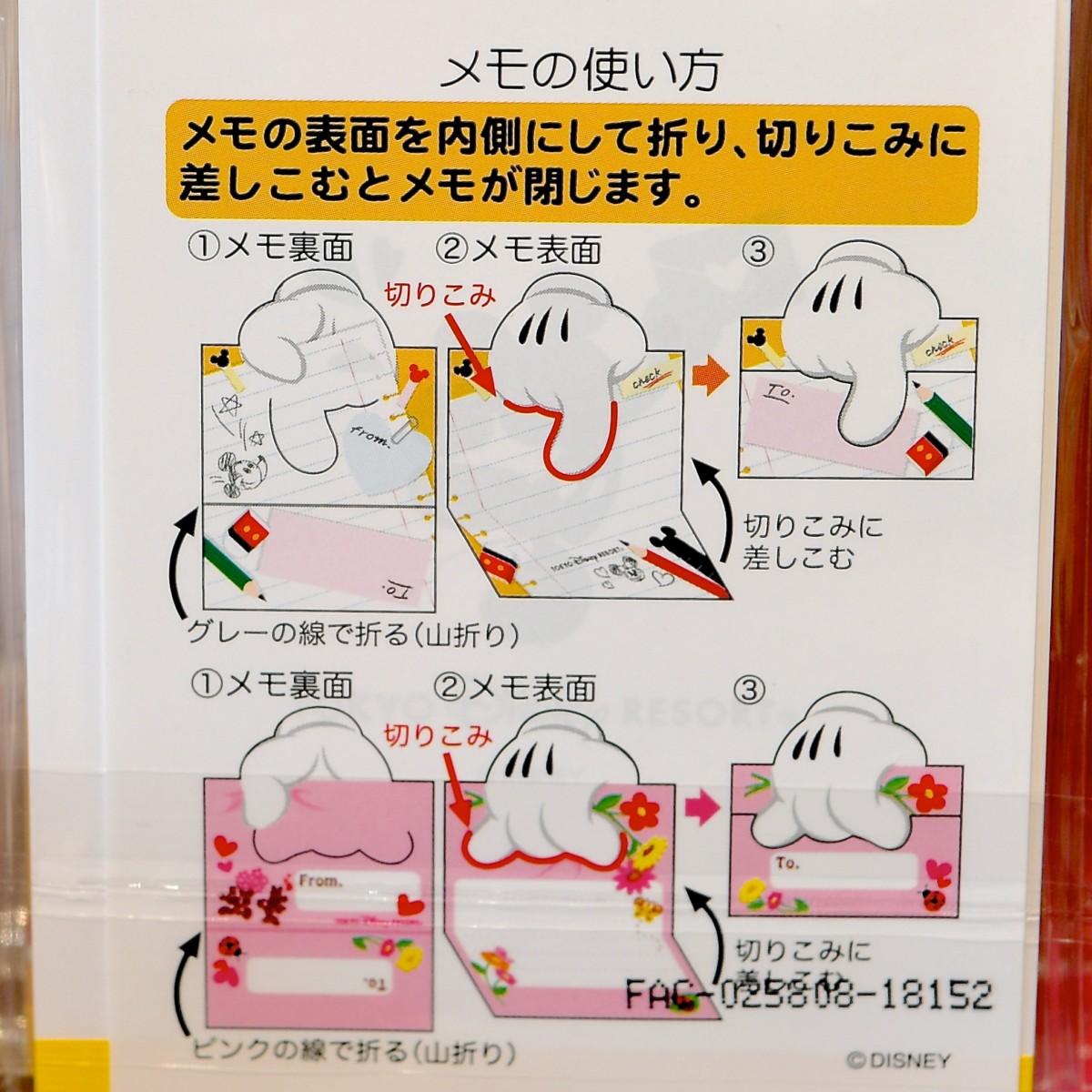 ミッキーがチェックしてくれているようなデザインのメモ。