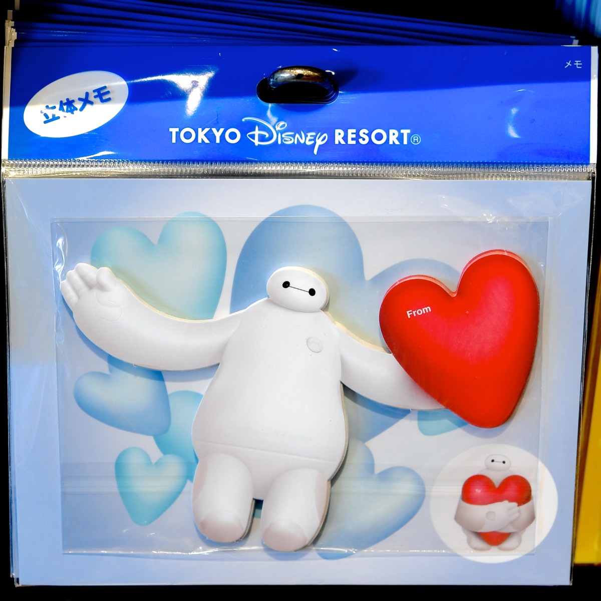 折るとベイマックスがハートを抱えているようなデザインになる立体メモ。