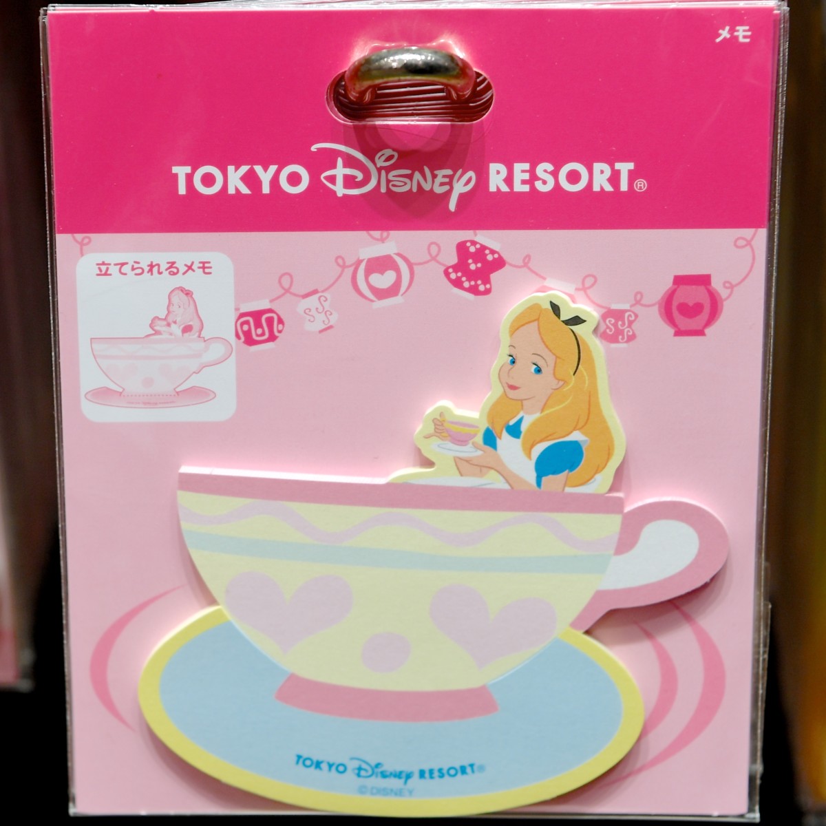 アトラクション「アリスのティーパーティー」に乗っているようなデザインのアリスメモ。