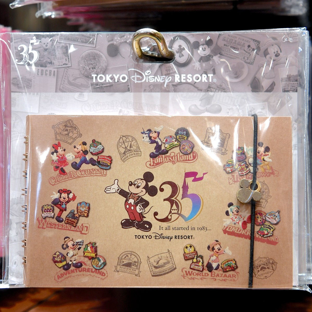 TDR35周年のロゴとミッキーがデザインされたおしゃれなリングメモ。