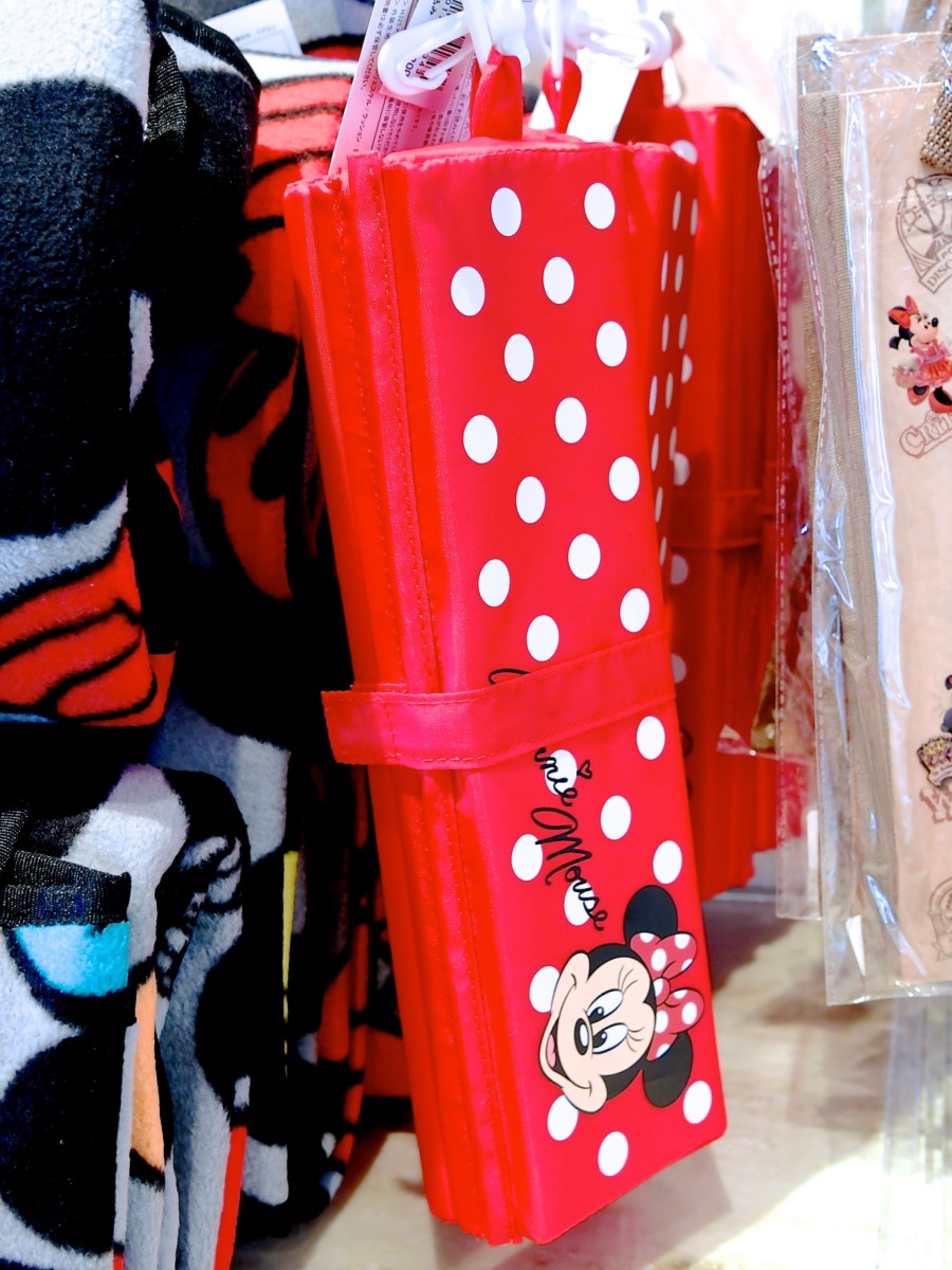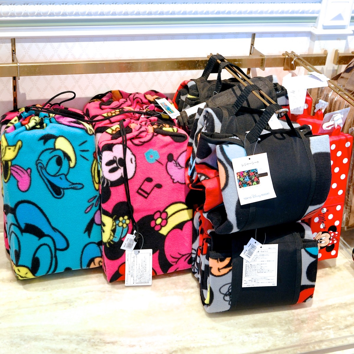 東京ディズニーランド、東京ディズニーシーでパレード待ちなどに使えるかわいいキャラクターデザインのポータブルクッションやレジャーシートを販売!
