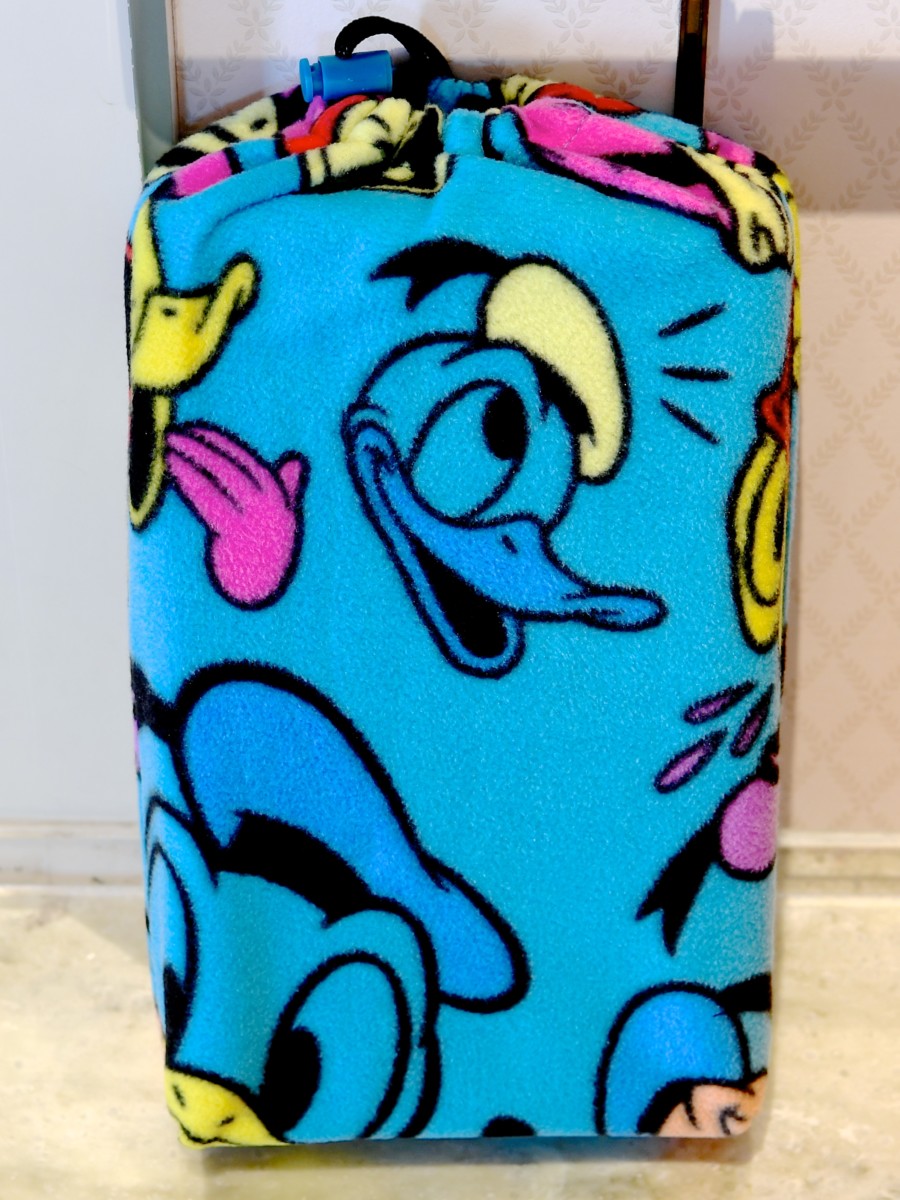ドナルドのお顔総柄デザイン青色ポータブルクッション。