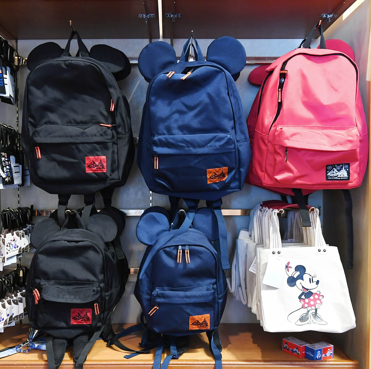 東京ディズニーランド、東京ディズニーシーではトートバッグやリュックサックなどバッグ類も種類豊富に販売中。