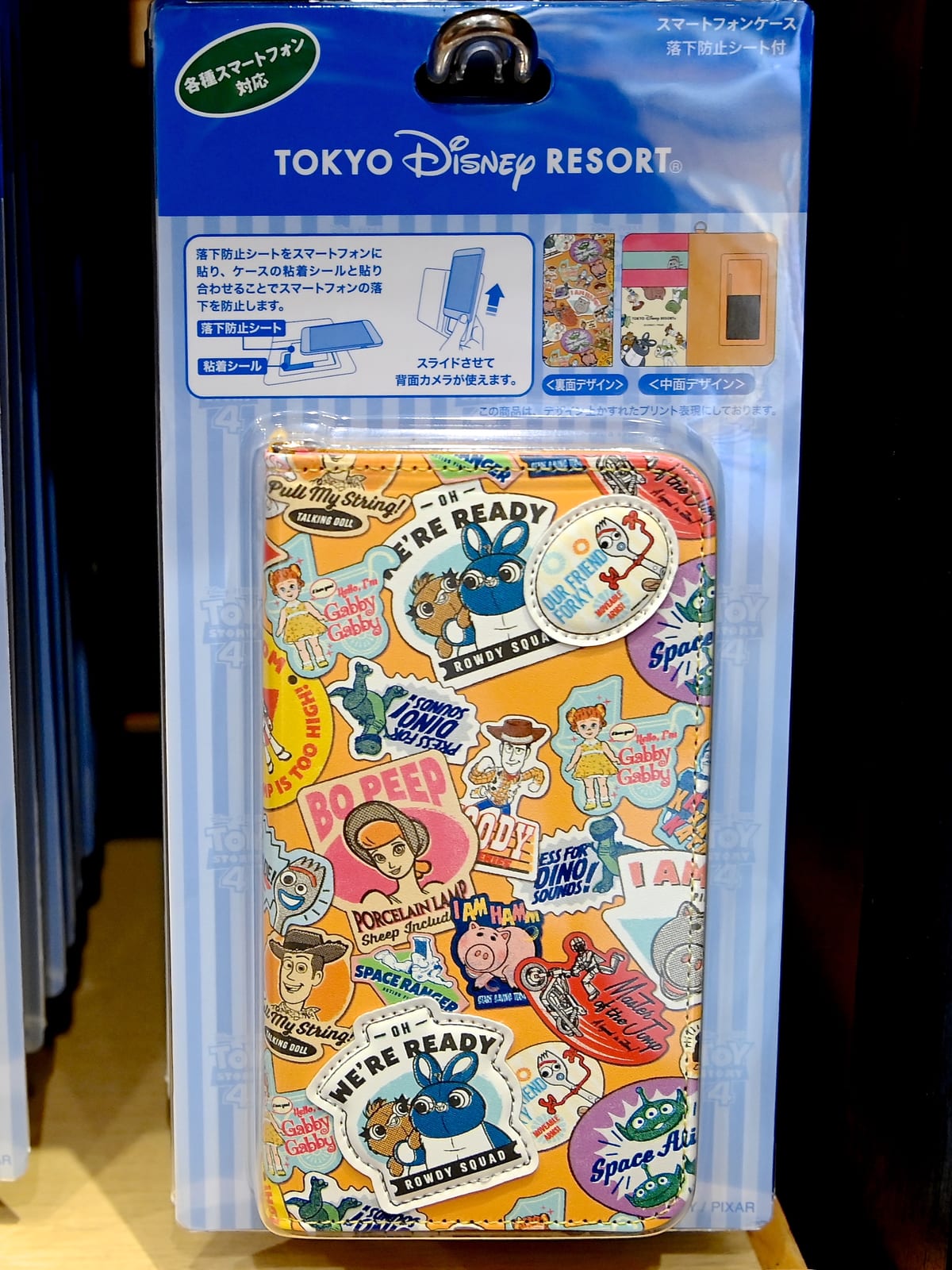 『トイ・ストーリー4』のキャラクターたちがデザインされた手帳型スマホケース。