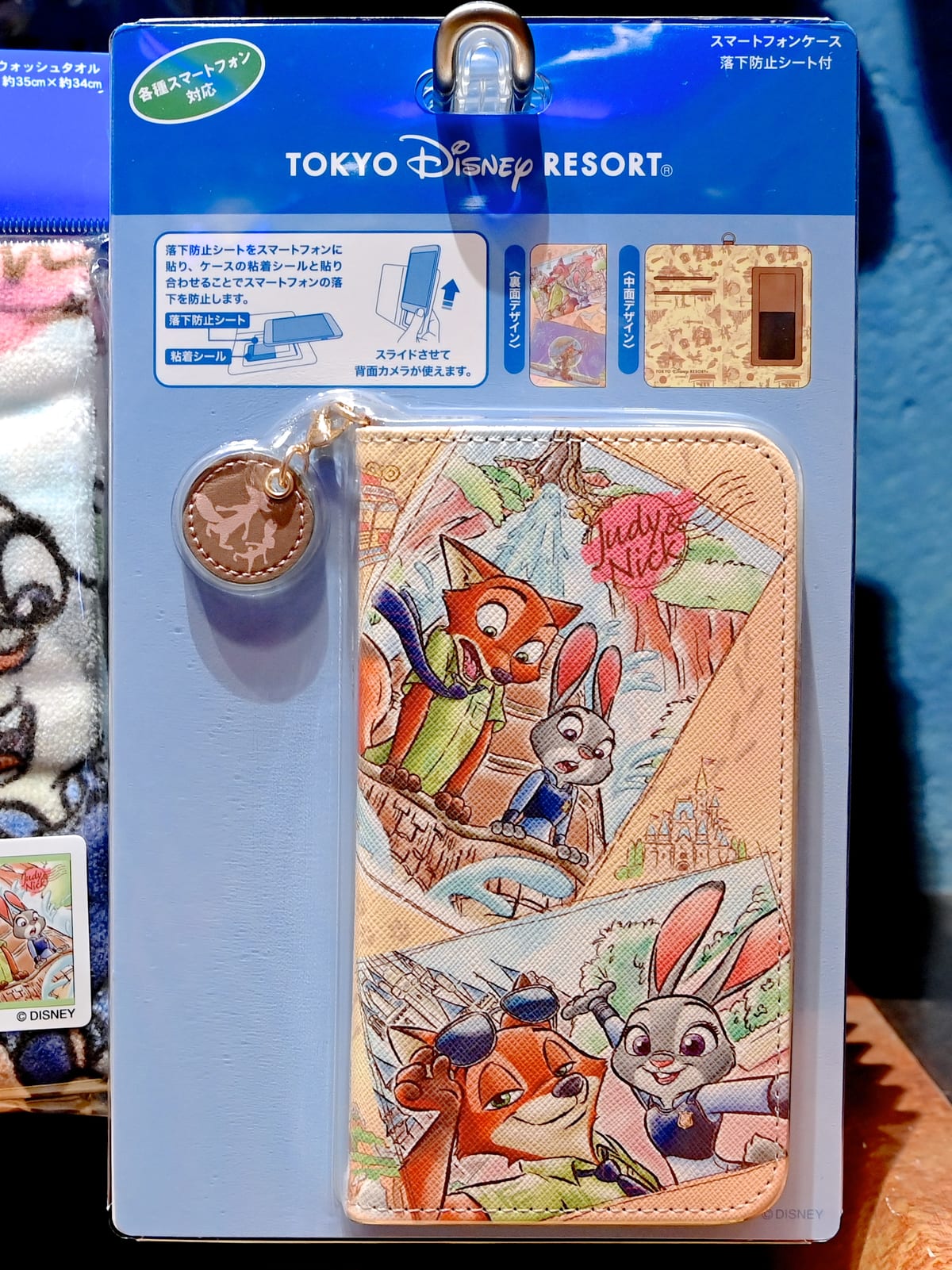 パークを楽しむニックとジュディが全面にデザインされたスマホケース。