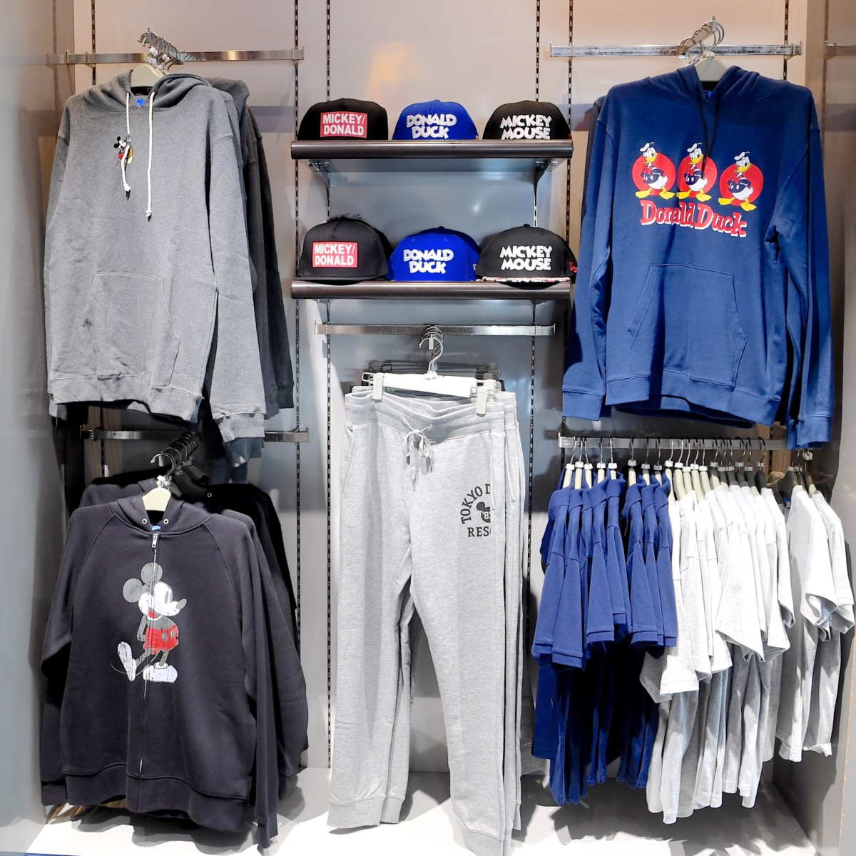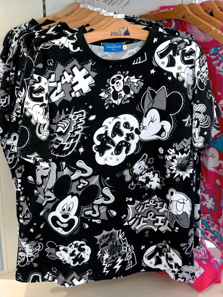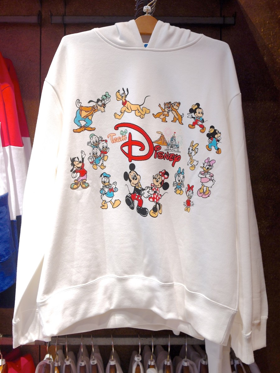 東京ディズニーランド、東京ディズニーシーの定番身につけアイテム、ディズニーキャラクターデザインのTシャツやパーカーなどアパレルアイテム。