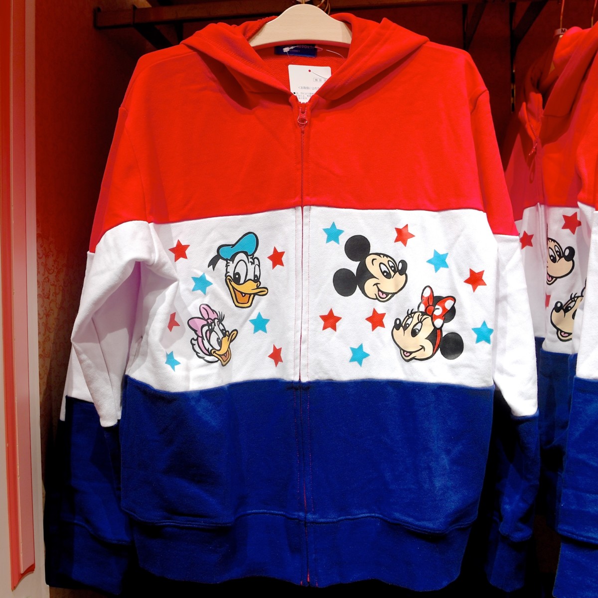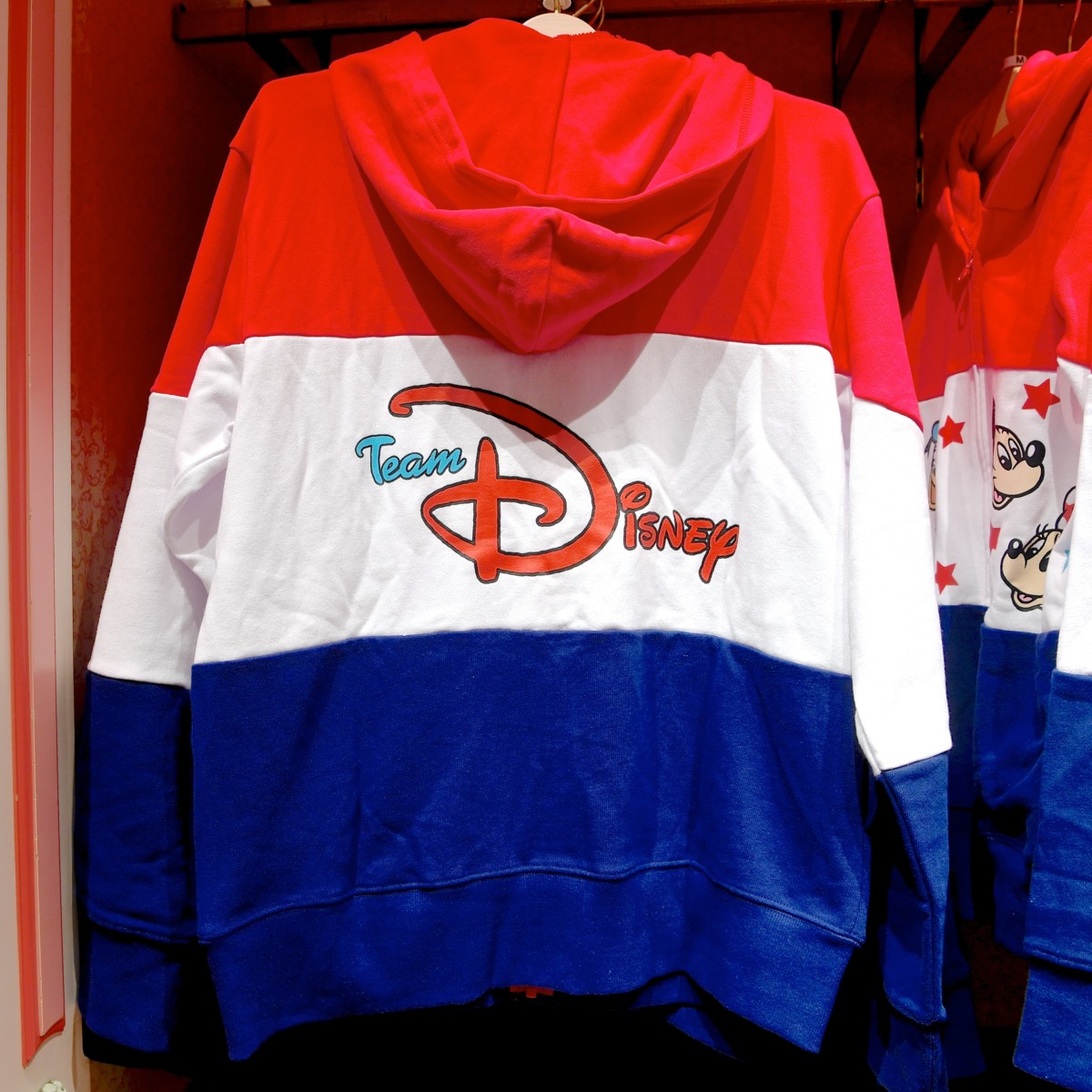 人気のチームディズニーデザイン(トリコロールカラー)パーカー。