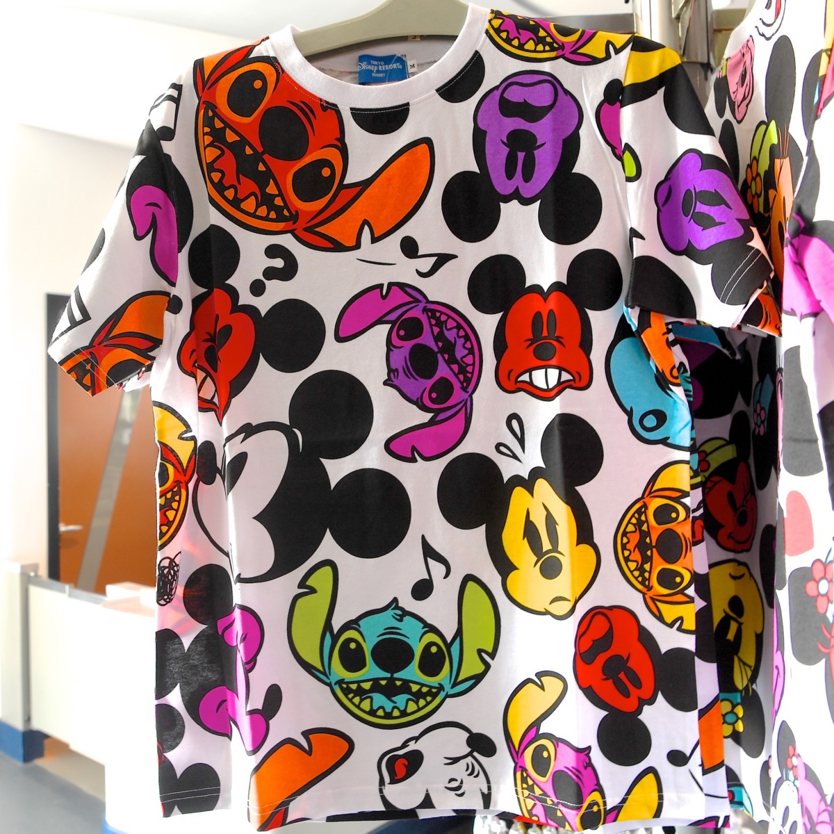 かわいいスティッチとミッキーのお顔総柄Tシャツ。