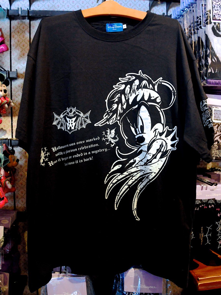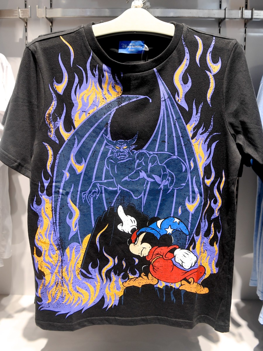 『魔法使いの弟子』に登場するソーサラーハットをかぶったミッキーと、短編『禿山の一夜』に登場する「チェルナボーグ」がデザインされたTシャツ。