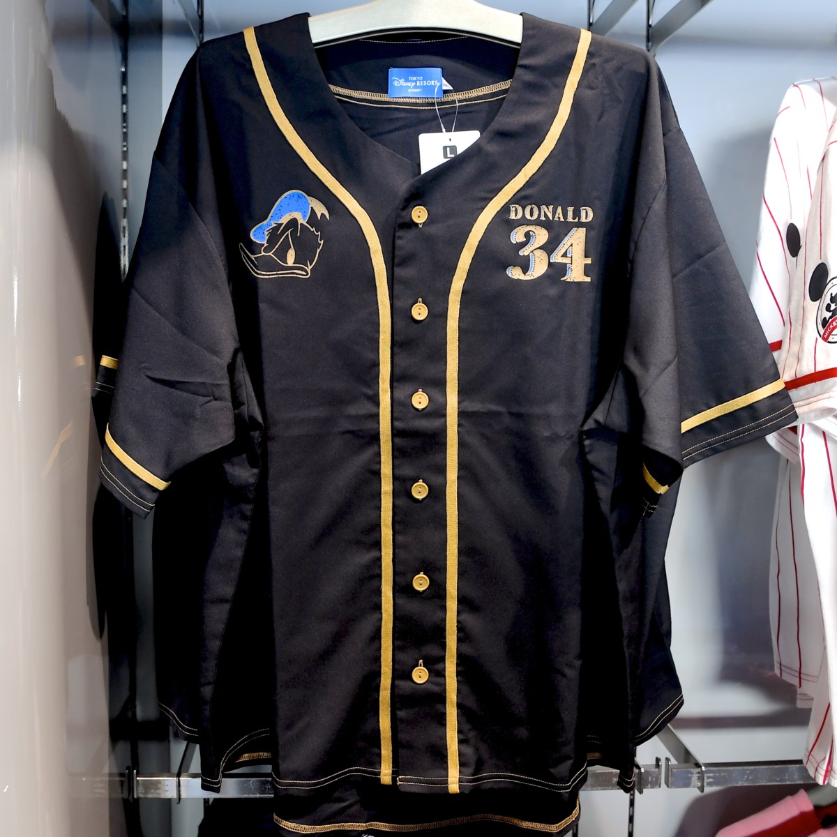 ユニフォーム風デザインのミッキーマウス半袖シャツ。