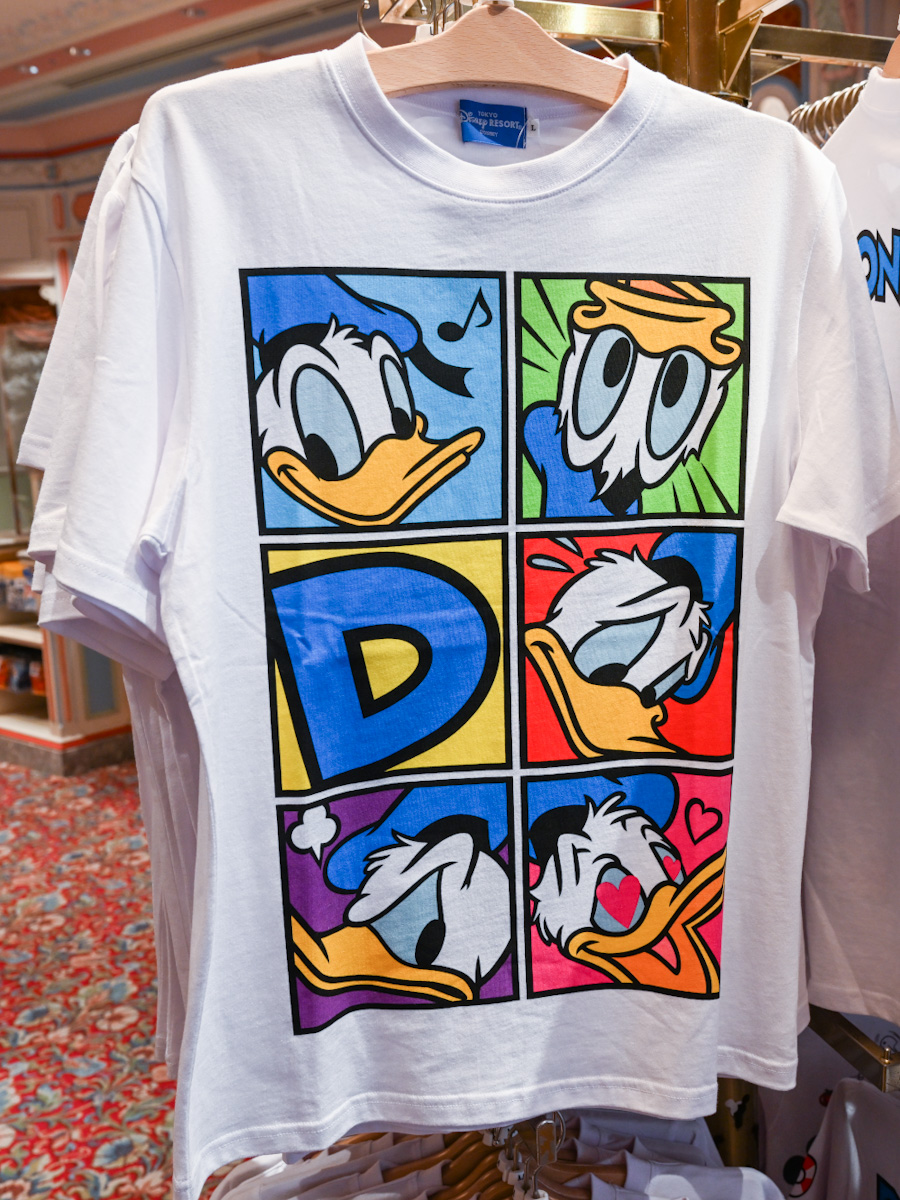 パークで販売しているドナルドダックのキュービックチョコレートクランチのパッケージ柄Tシャツ。