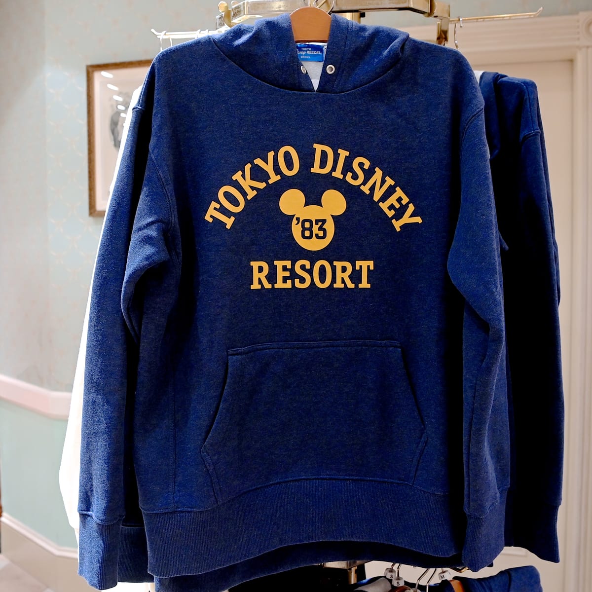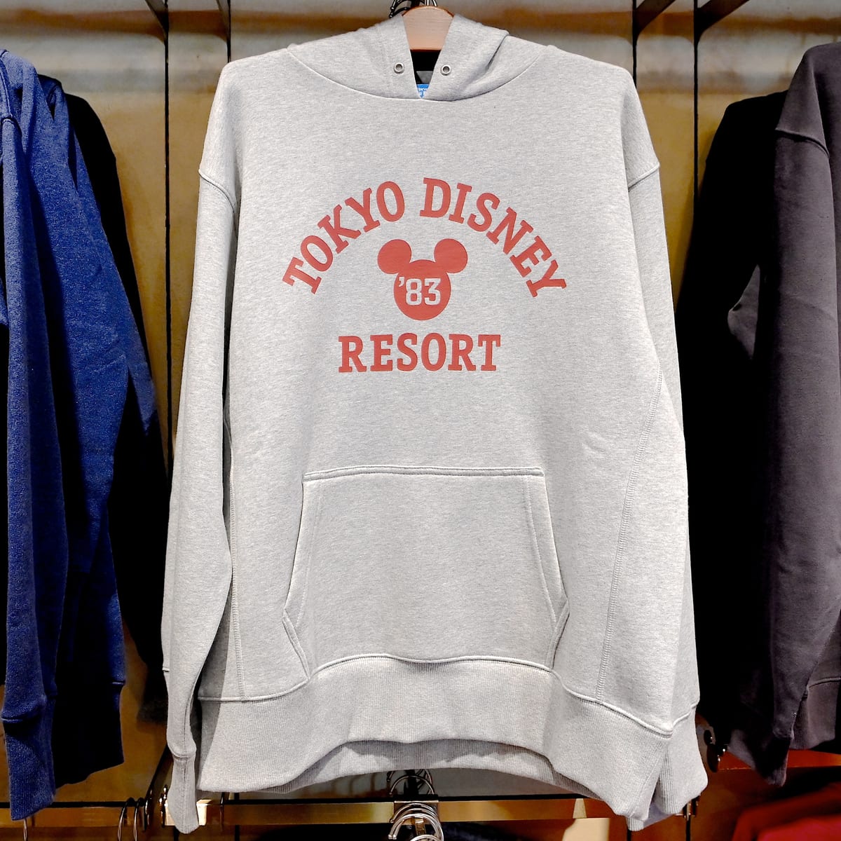 中央に東京ディズニーリゾートのロゴとミッキーマーク、開園年の1983の83がデザインされたシンプルパーカー。