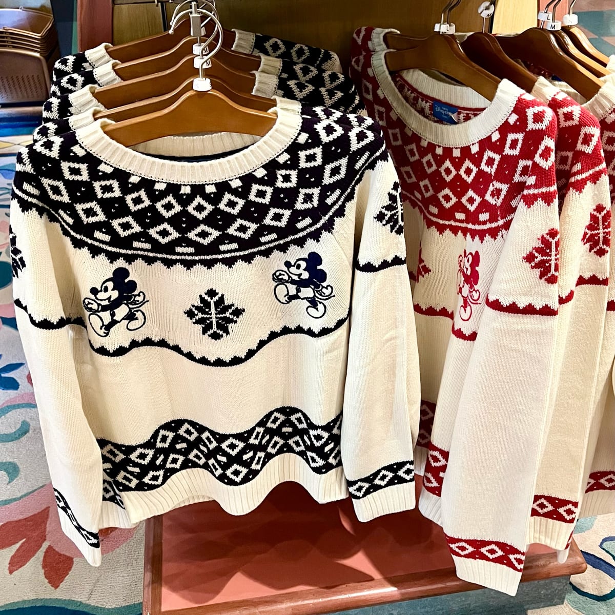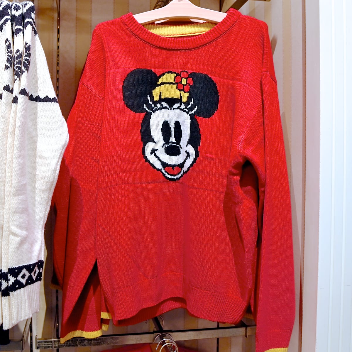 クラシックなミニーマウスのお顔がデザインされたセーター。
