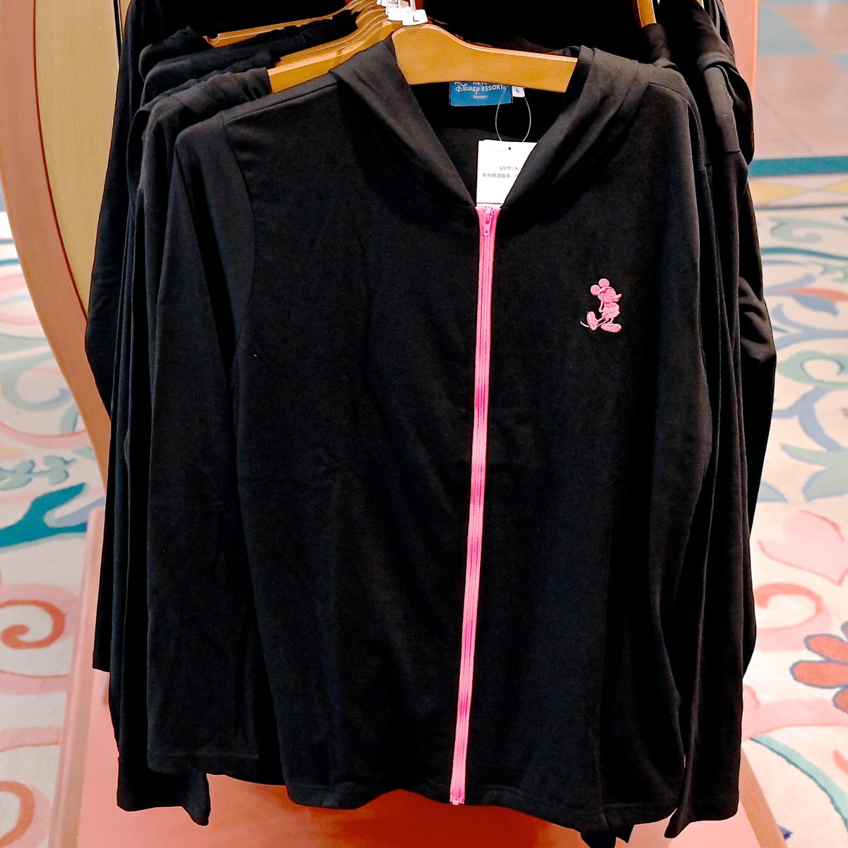 ブラック×ピンクがかわいいミッキーのUVカットパーカー。