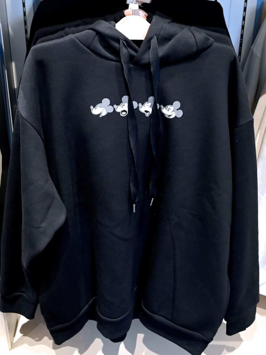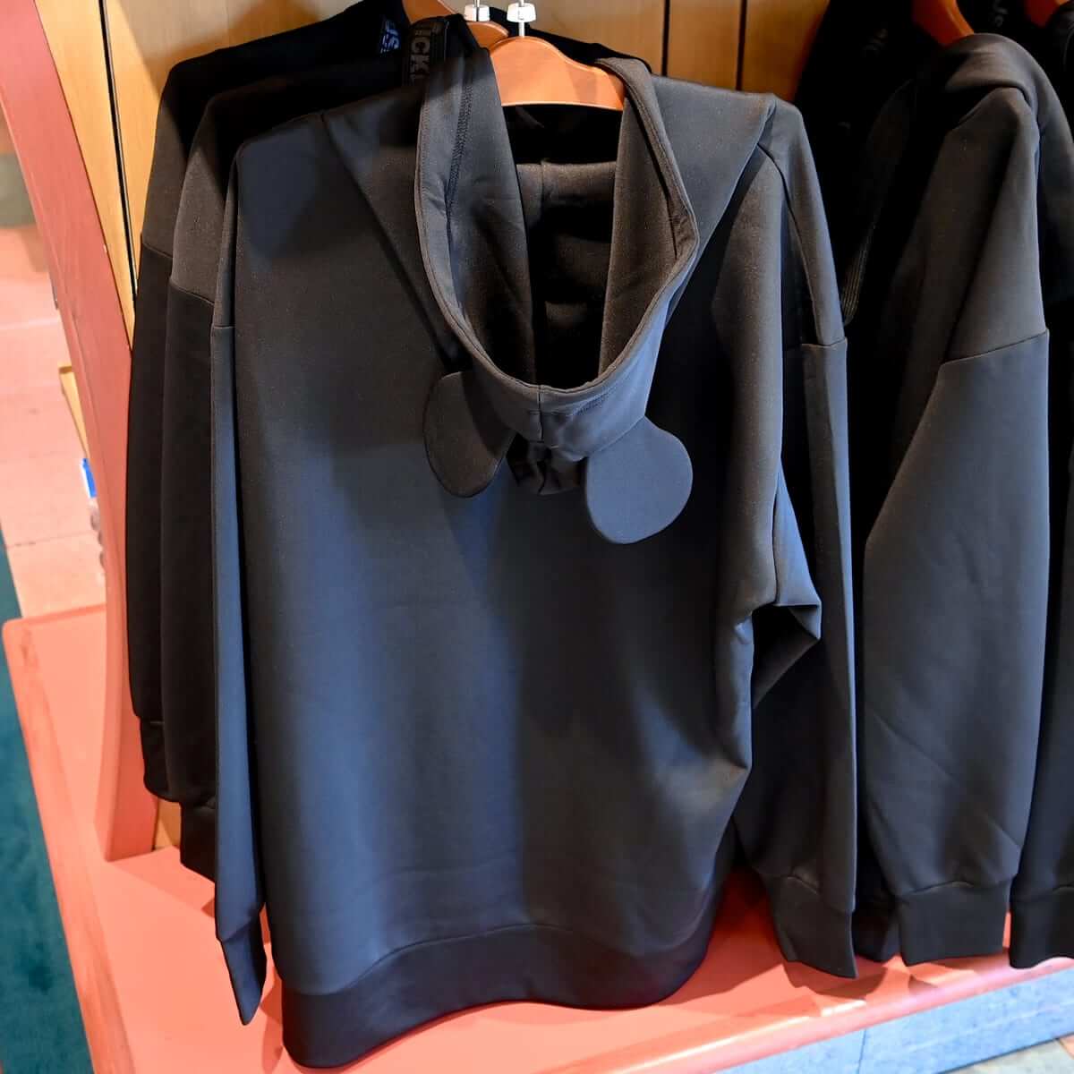 ミッキーマウスのお耳付きフード、BIGシルエットがかわいいブラックパーカー。